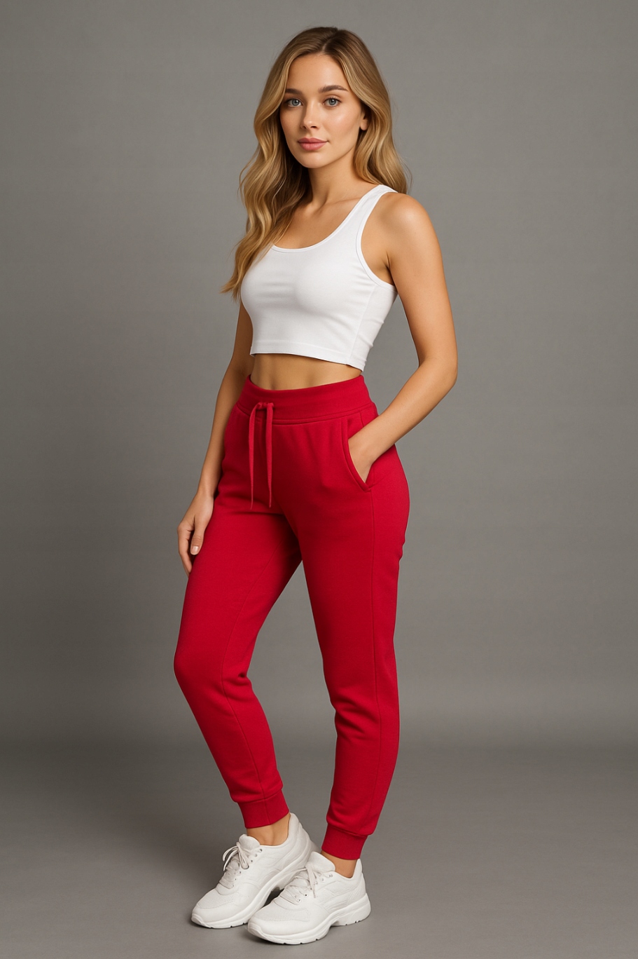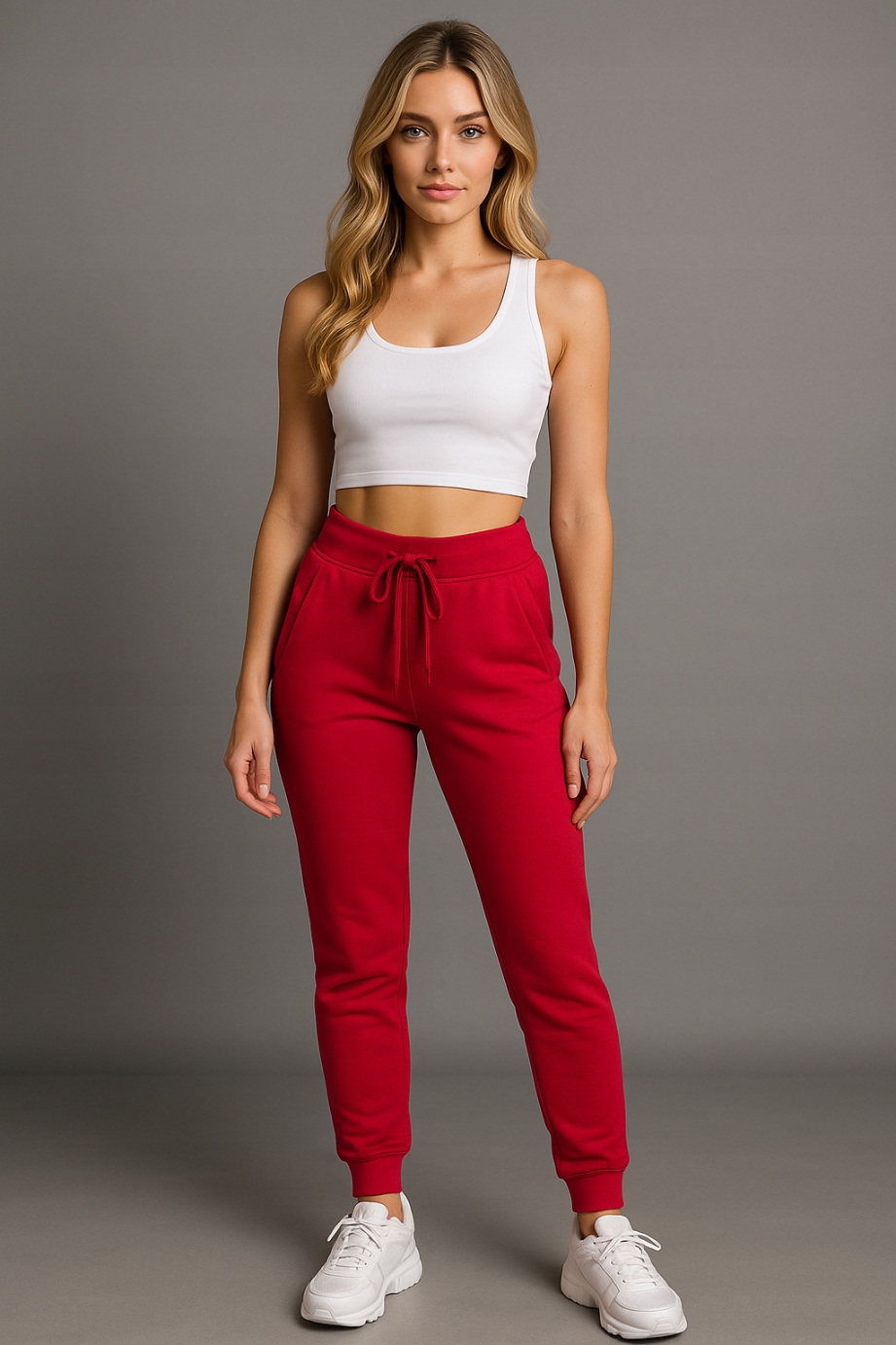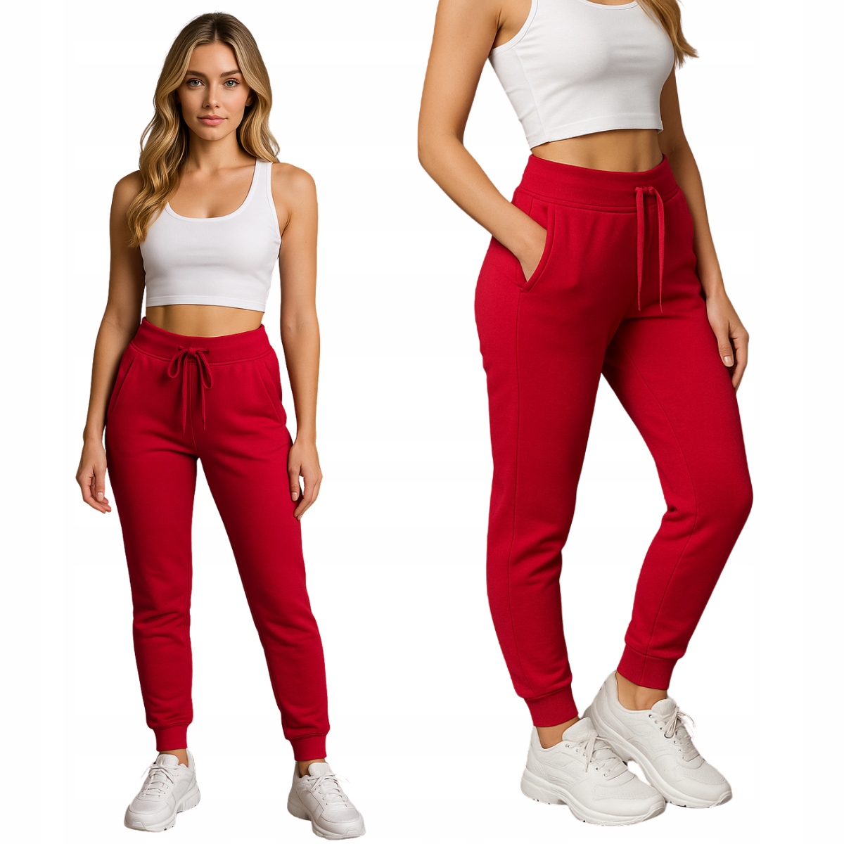Класичні червоні спортивні штани - це поєднання жіночої енергії та спортивного стилю. Завдяки приталеному крою та еластичній тканині вони чудово виглядають як у русі, так і щодня.