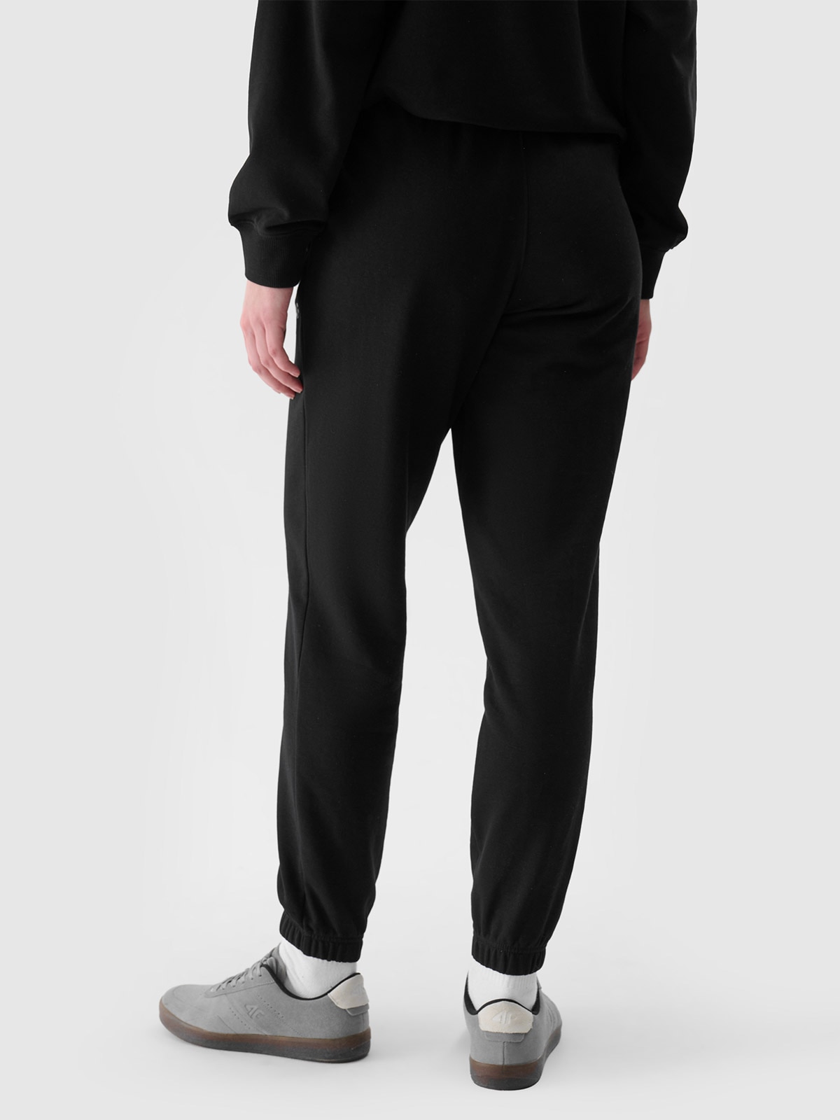 Жіночі спортивні костюми 4F виготовлені з 79% бавовни, що робить їх м’якими, міцними та приємними на дотик. Додавання поліестеру (21%) дозволяє матеріалу зберігати форму і бути стійким до зношування протягом багатьох сезонів. Штани без підкладки, що робить їх легшими та підходять для теплих днів. З боків є 2 відкритих кишені. Еластичний пояс із зовнішнім регулюванням шнурків.