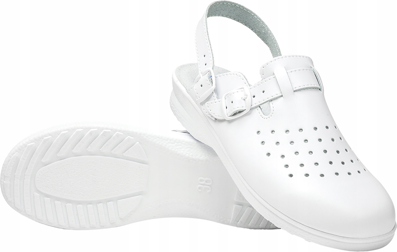 - перфорований верх з натуральної шкіри з ремінцем для регулювання ширини, стійкий до щоденного прання та дезінфекції,