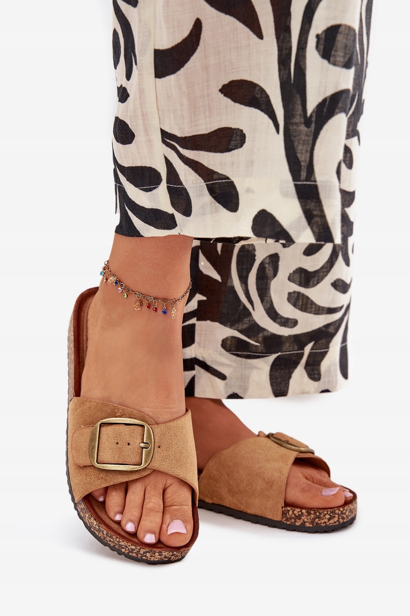 Жіночі фліп -флопи, виготовлені з еко -замші. Встановити на пробковій платформі. Їх відрізняє затискач з регульованим ременем, який дозволяє ідеально відповідати стопі. Профілерована вставка забезпечує комфорт протягом усього дня, а їх простий зовнішній вигляд робить їх ідеальними для повсякденних стилізацій. Ідеально підходить для літніх днів, вони відповідають сукням, спідницям або штанам, вводячи легкість та стиль з кожним творінням. Вибираючи розмір, ми можемо запропонувати таблицю розмірів.