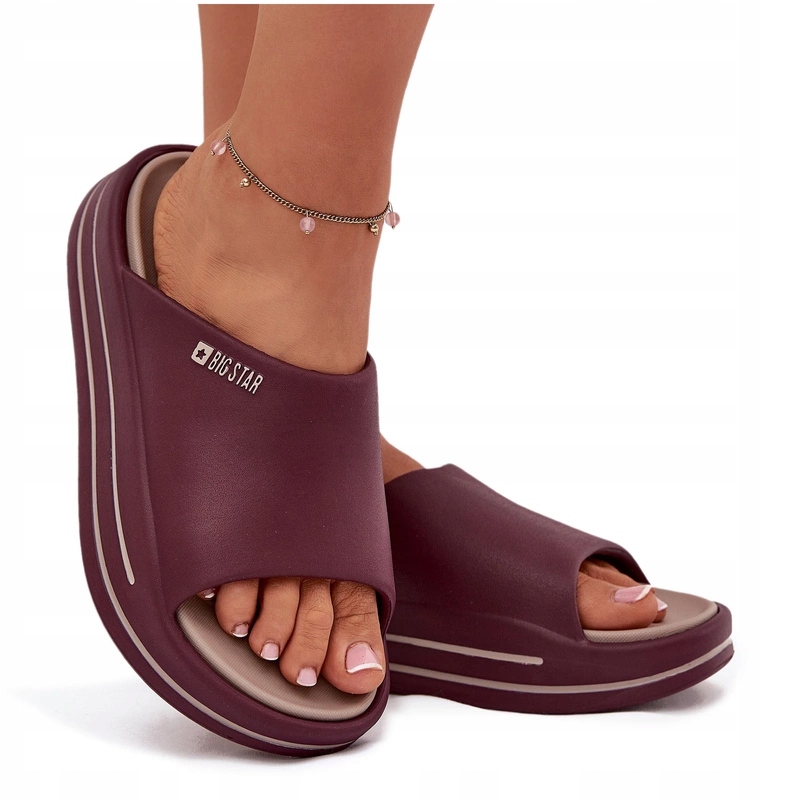 Жіночі тапочки від бренду Big Star, виготовленої з м'якої та приємної до сенсорної піни. Висока підошва додає кілька сантиметрів у висоту, що робить їх не тільки комфортними, але й ідеально для літніх днів. Ідеально підходить як для пляжу, так і для щоденних результатів, вони відповідають різним випадковим стилізацією, підкреслюючи вільну природу літніх днів. Вибираючи розмір, запропонуйте таблицю розмірів.