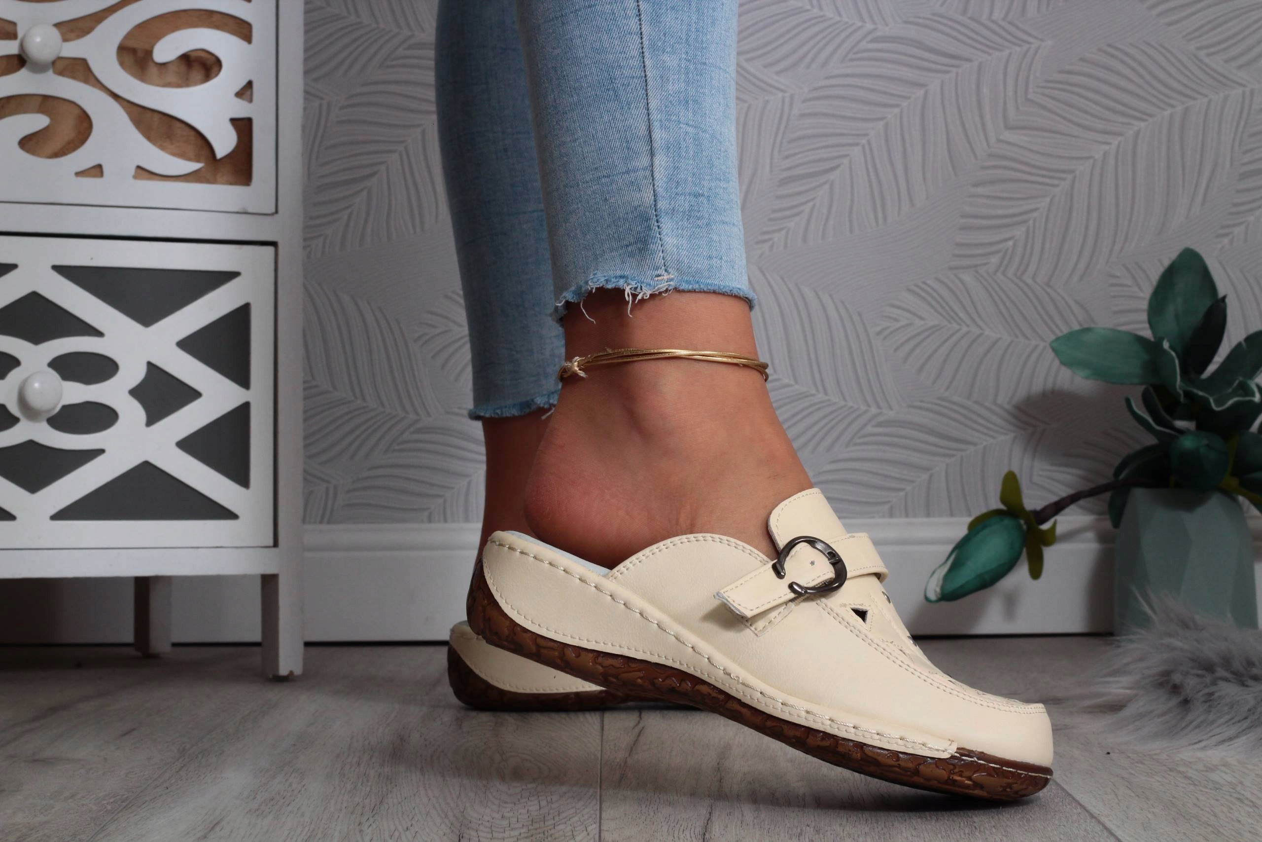 Жіночі бежеві шльопанці на низькій танкетці з декоративною пряжкою. ❤ Виготовлені з якісних матеріалів. Вони ідеально підходять як повсякденне взуття. В'єтнамки легкі і забезпечують зручність і комфорт використання. Профільована шкіряна устілка з амортизуючою подушкою на п'яті. Підошва стійка і добре амортизує стопу. Модний, класичний крій ідеально підійде до багатьох стилів! Добре виглядає на нозі.