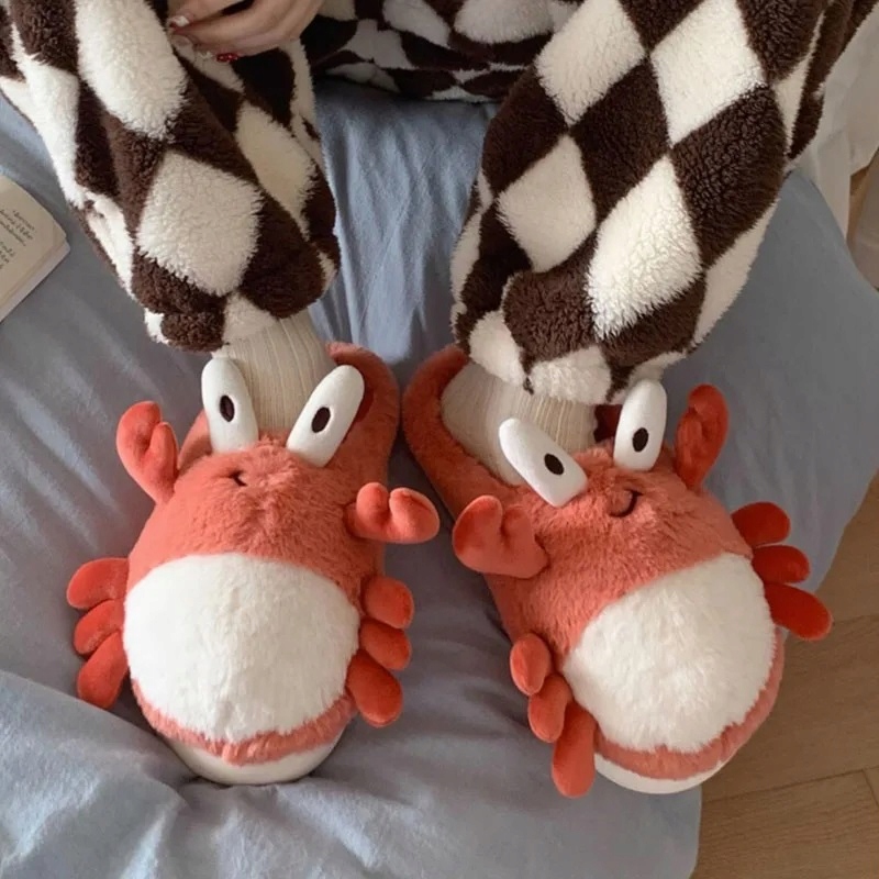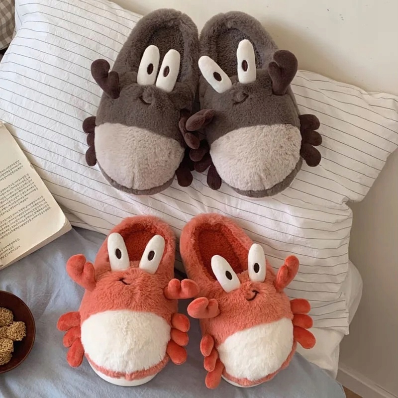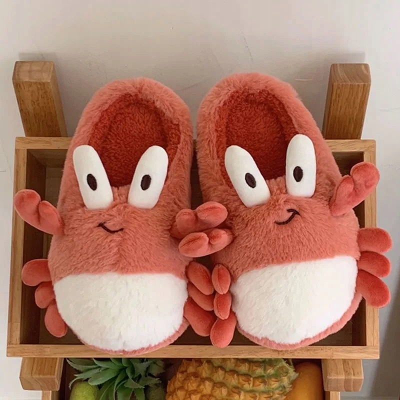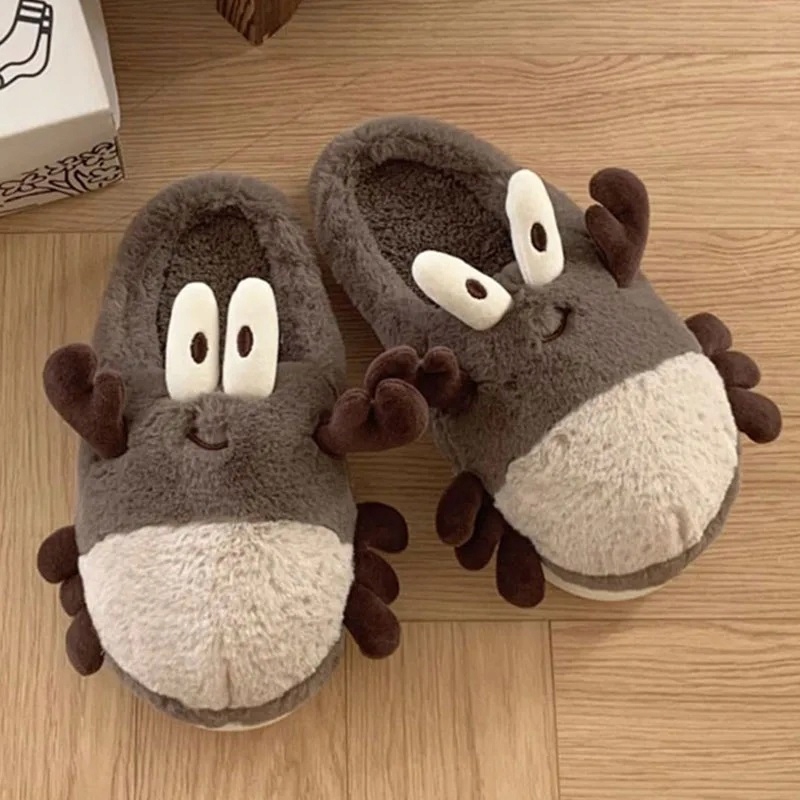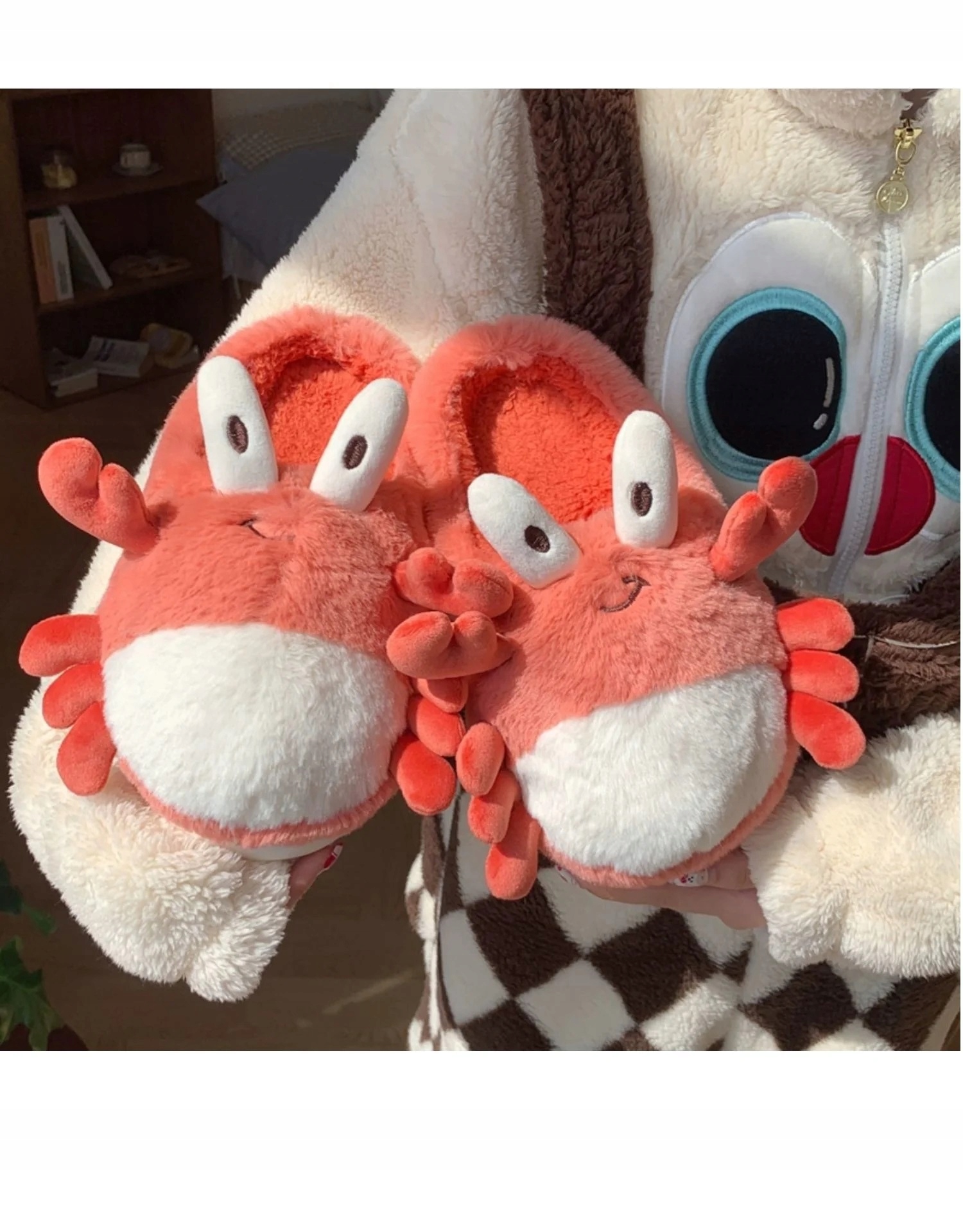 ЖІНОЧІ ТЕПЛІ ХУТРЯНІ ТАПОЧКИ З ВЕСЕЛИМ КРАБОМ