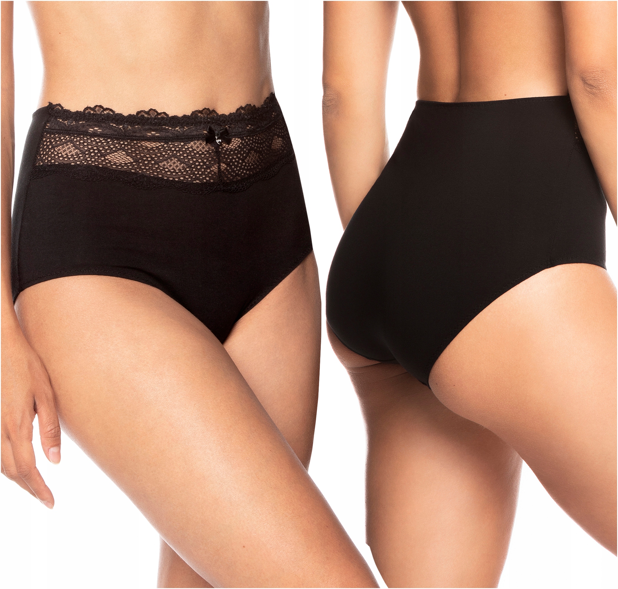 Трусики формують фігуру, широко стягнуті і мають високу талію. Ззаду вони прикривають сідниці і не прозорі.