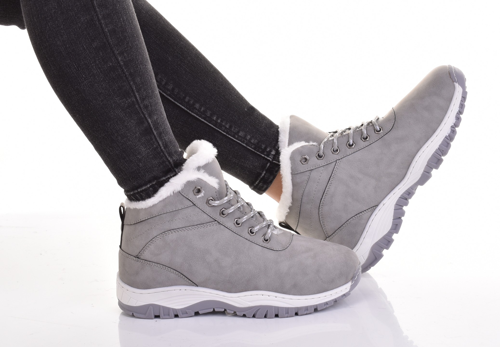 Модні жіночі спортивні зимові черевики сірого кольору