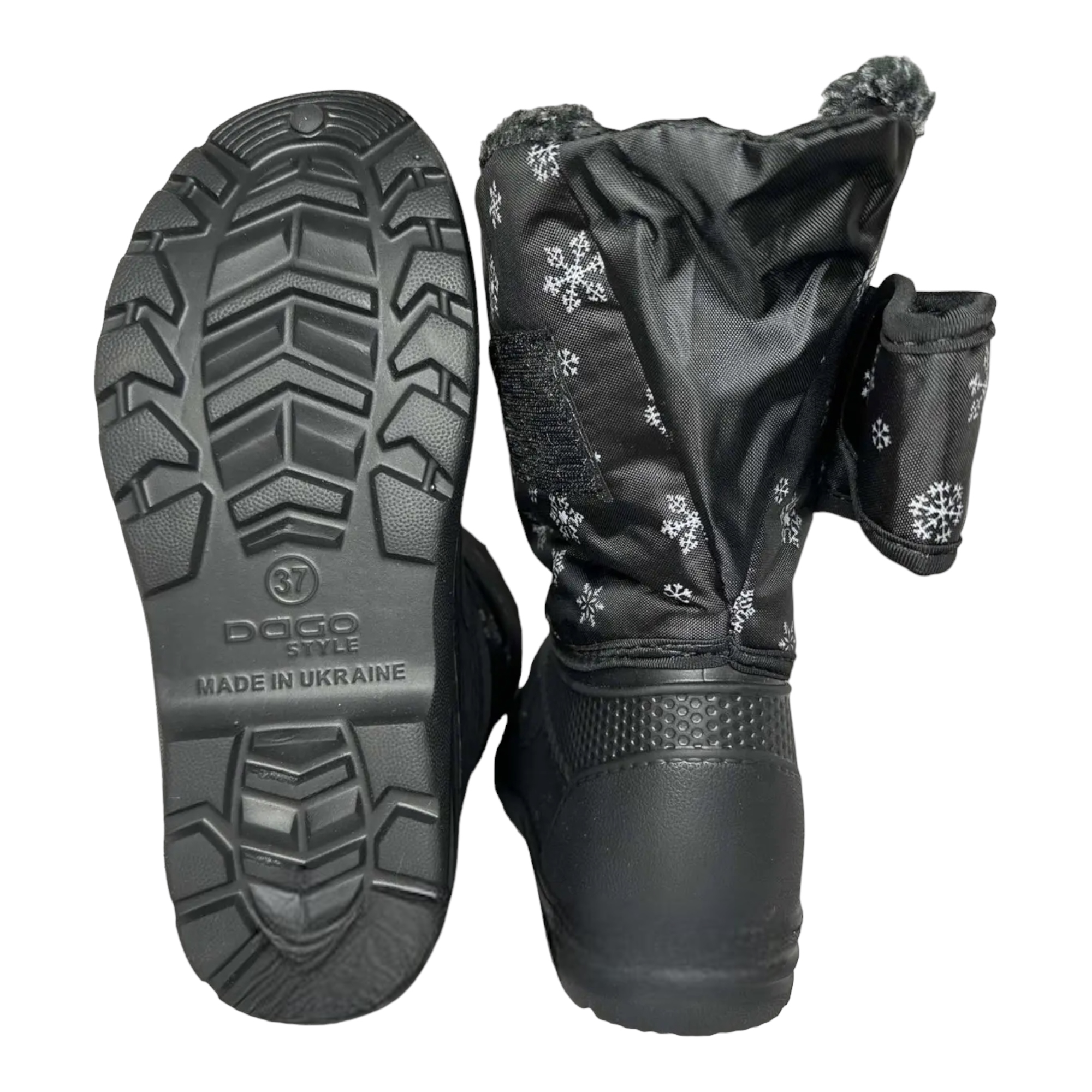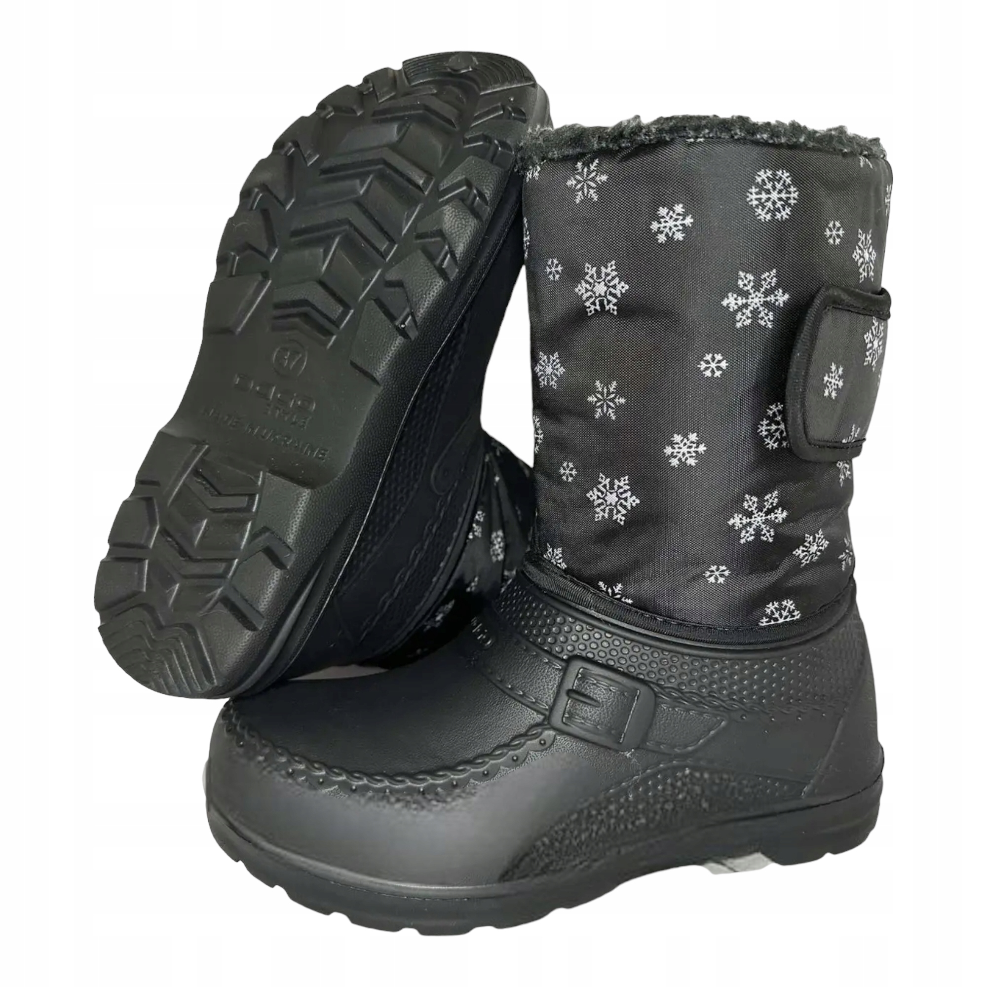 Утеплене взуття з легкого, міцного поролону. Інтер'єр обшитий товстим плюшевим ведмедиком, що гарантує тепловий комфорт у зимові дні. Повністю вітро- та водонепроникний.