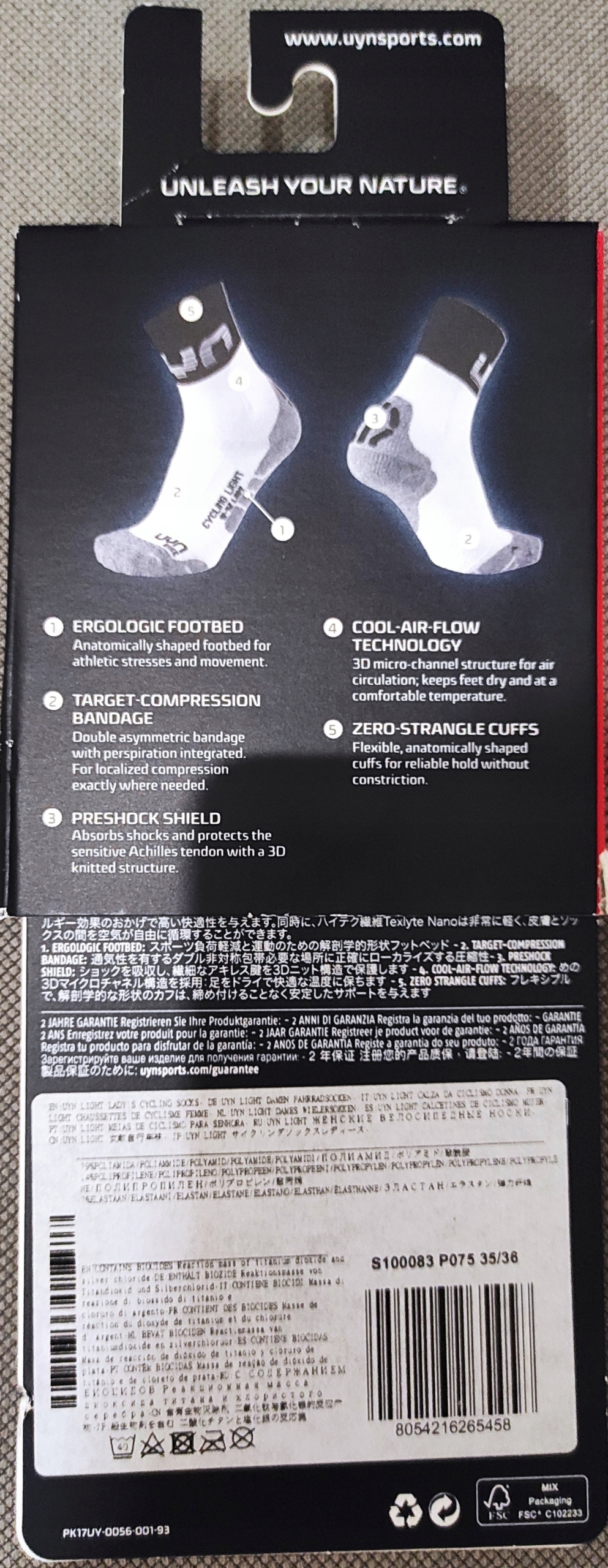 TEXLYTE NANO - шкарпетки мають гіпоалергенні властивості. У той же час технологічно передове волокно дуже легке, завдяки чому повітря може вільно циркулювати між шкірою та одягом.
