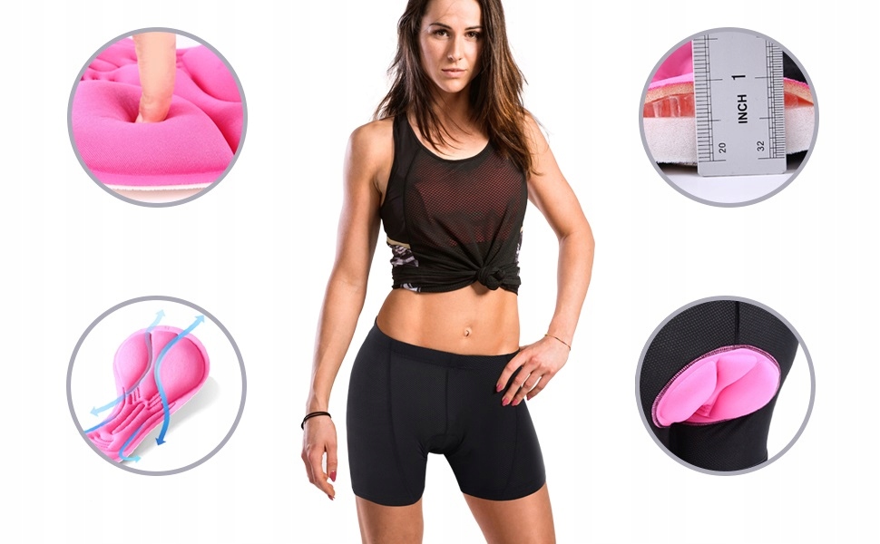 - Ширша 3D-вставка, яка використовується в жіночих велосипедних шортах, розроблена спеціально для жінок
