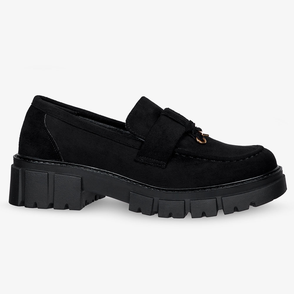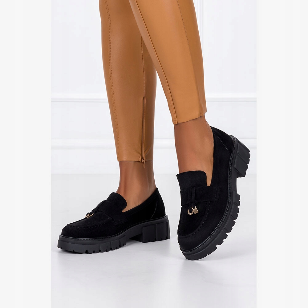 Чорні жіночі мокасини моделі G23X7-B виготовлені з високоякісної замшевої екологічної шкіри, що гарантує відмінну якість, комфорт і прилягання до ноги. Це елегантне та стильне взуття, яке можна носити на різні випадки життя. Вони мають плоску підошву з протекторами, що забезпечує хороше зчеплення, комфорт і стабільність під час ходьби. Їх головною відмінною рисою є тонкий і ефектний декор, розміщений на передній частині верху, який додає взуття неповторного шарму та елегантності. Їх можна носити як з формальним, так і з неофіційним одягом. Вони ідеально поєднуються з брюками, як класичними, так і з джинсами, а також сукнями та спідницями. Вони чудово доповнять ваш гардероб, адже чорний колір універсальний і легко поєднується з іншими елементами вбрання. Якщо ви шукаєте стильне та зручне взуття, перегляньте пропозиції Casu