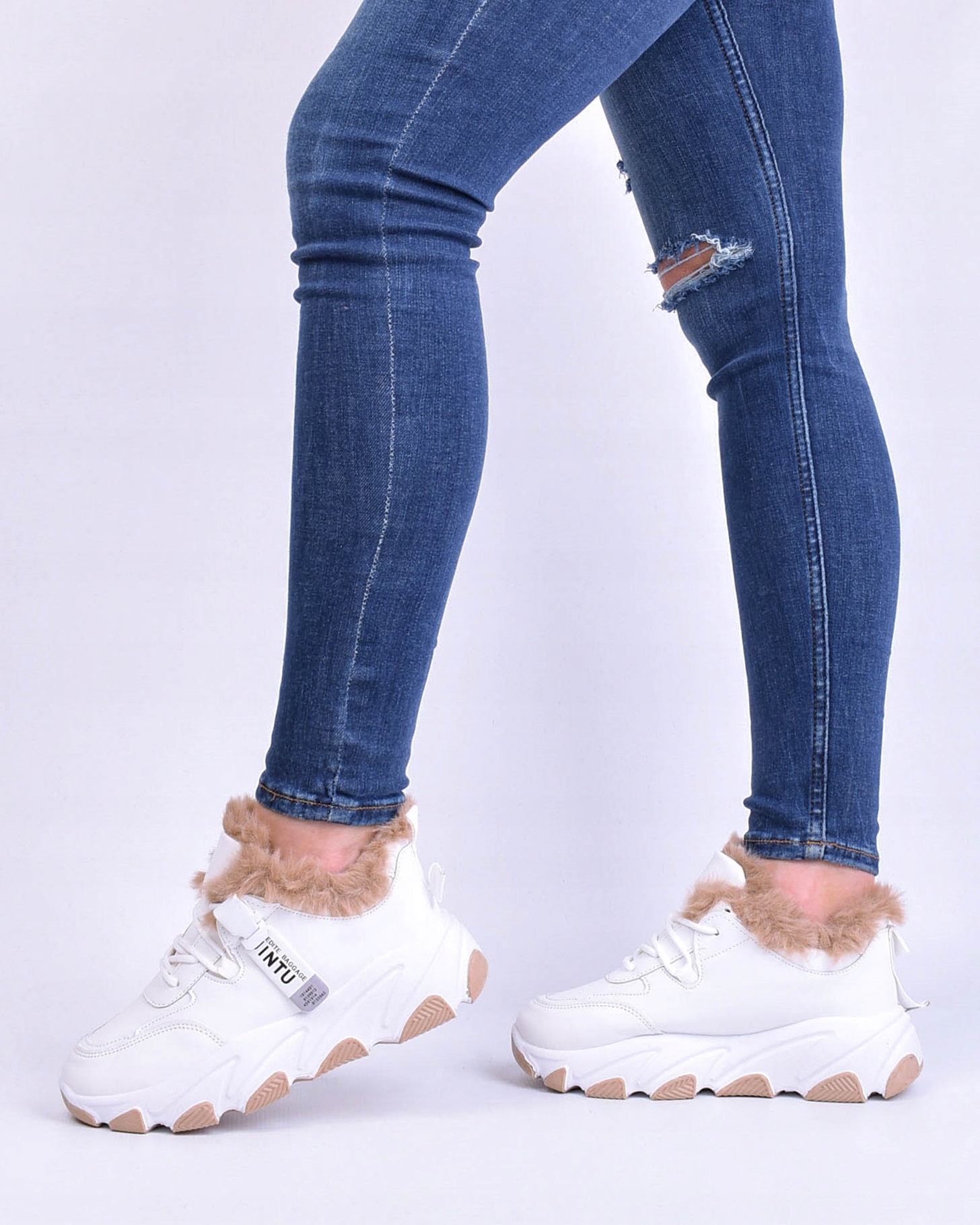 Спортивне взуття з високоякісної екологічної шкіри. Верх навколо щиколотки прикрашений густим хутром. Внутрішня частина взуття утеплена, підбита взуттєвою ковдрою, а устілка покрита хутром. Взуття тепле і ідеальне для зимових умов. Масивна підошва відмінно ізолює від холодної підлоги. Утеплене спортивне взуття – відмінний компроміс для холодних осінніх і зимових днів. Комфорт і тепло в одному!