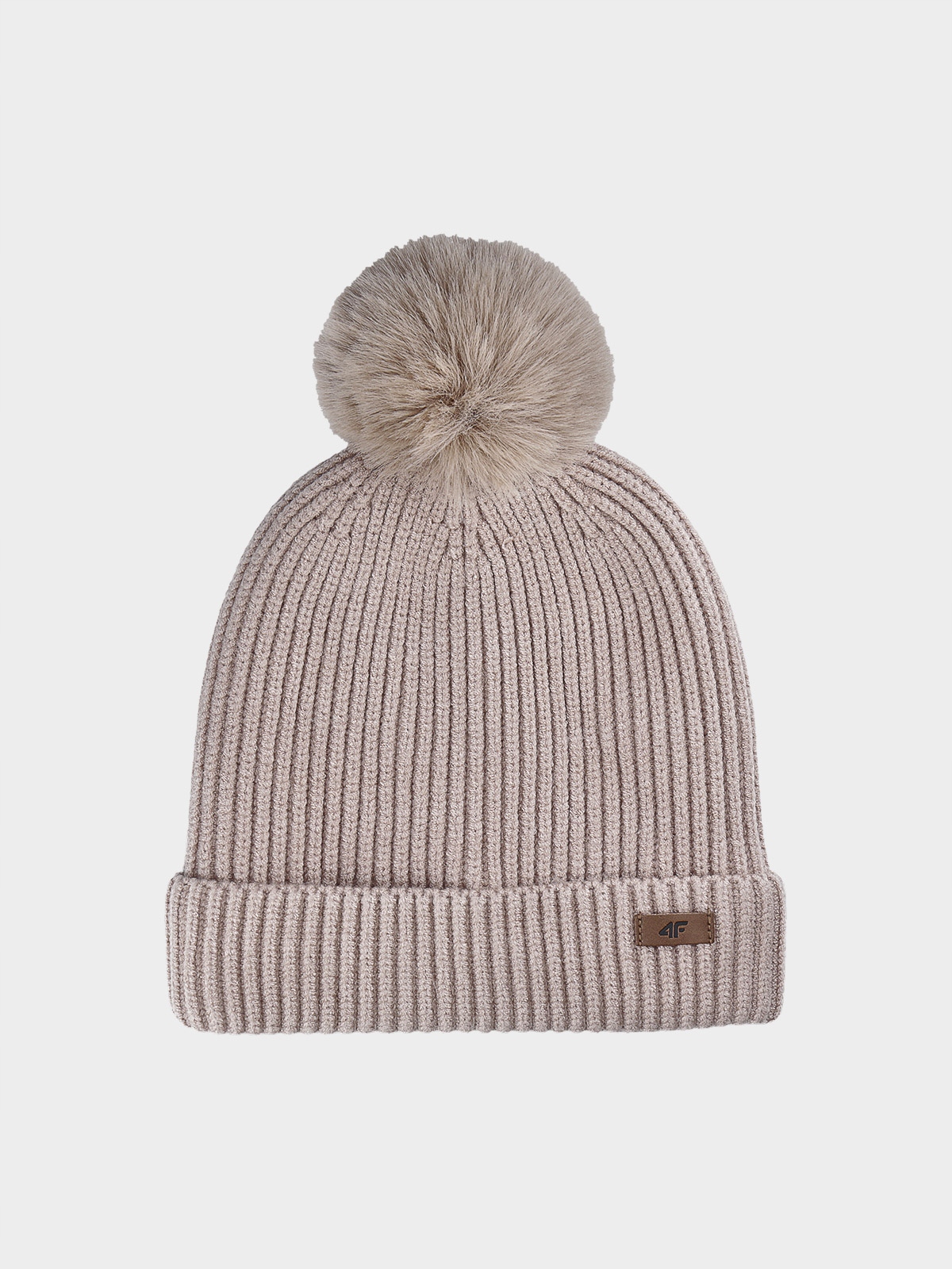 Жіночий капелюх підкладений теплий велюр , що забезпечує додатковий тепловий комфорт. Це двоє. На вершині є штучний помпах. Він має згорнуту манжету. Сезони