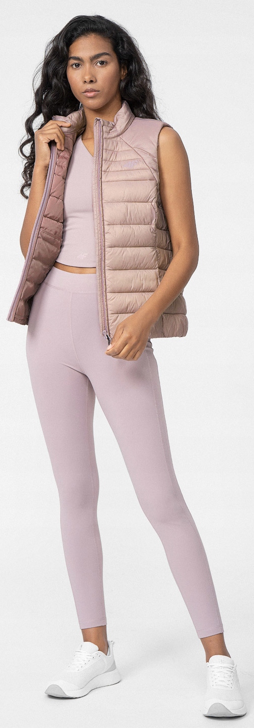 вниз жилет для жінок. Він має розріз, що досягає стегон. Наповнений синтетичним вниз, що забезпечить вам тепловий комфорт у прохолодніші дні.