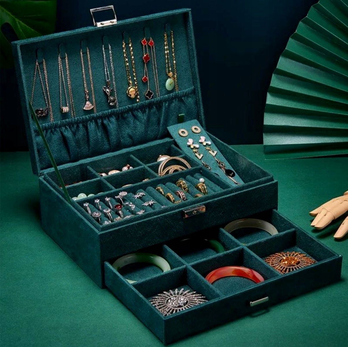 ✅ Завдяки різноманітним відділенням і ящикам ви зможете розташувати свої прикраси відповідно до своїх уподобань. Стане в нагоді для зберігання сережок, каблучок і кольє.