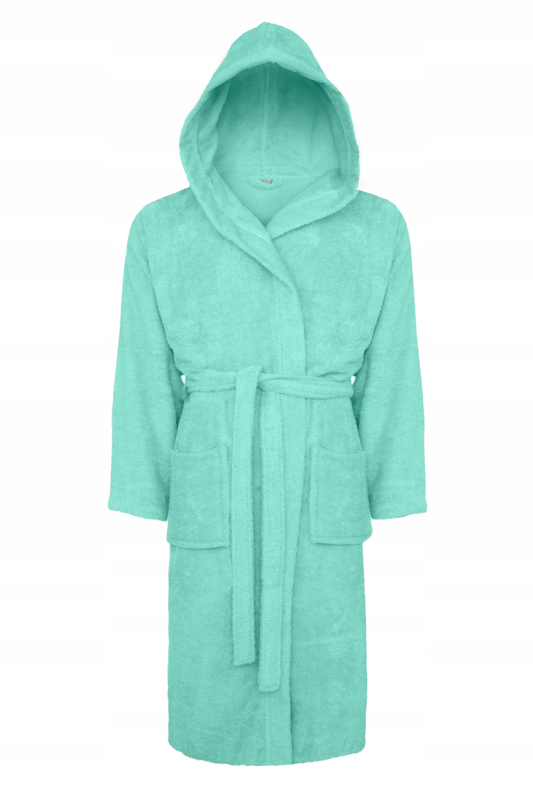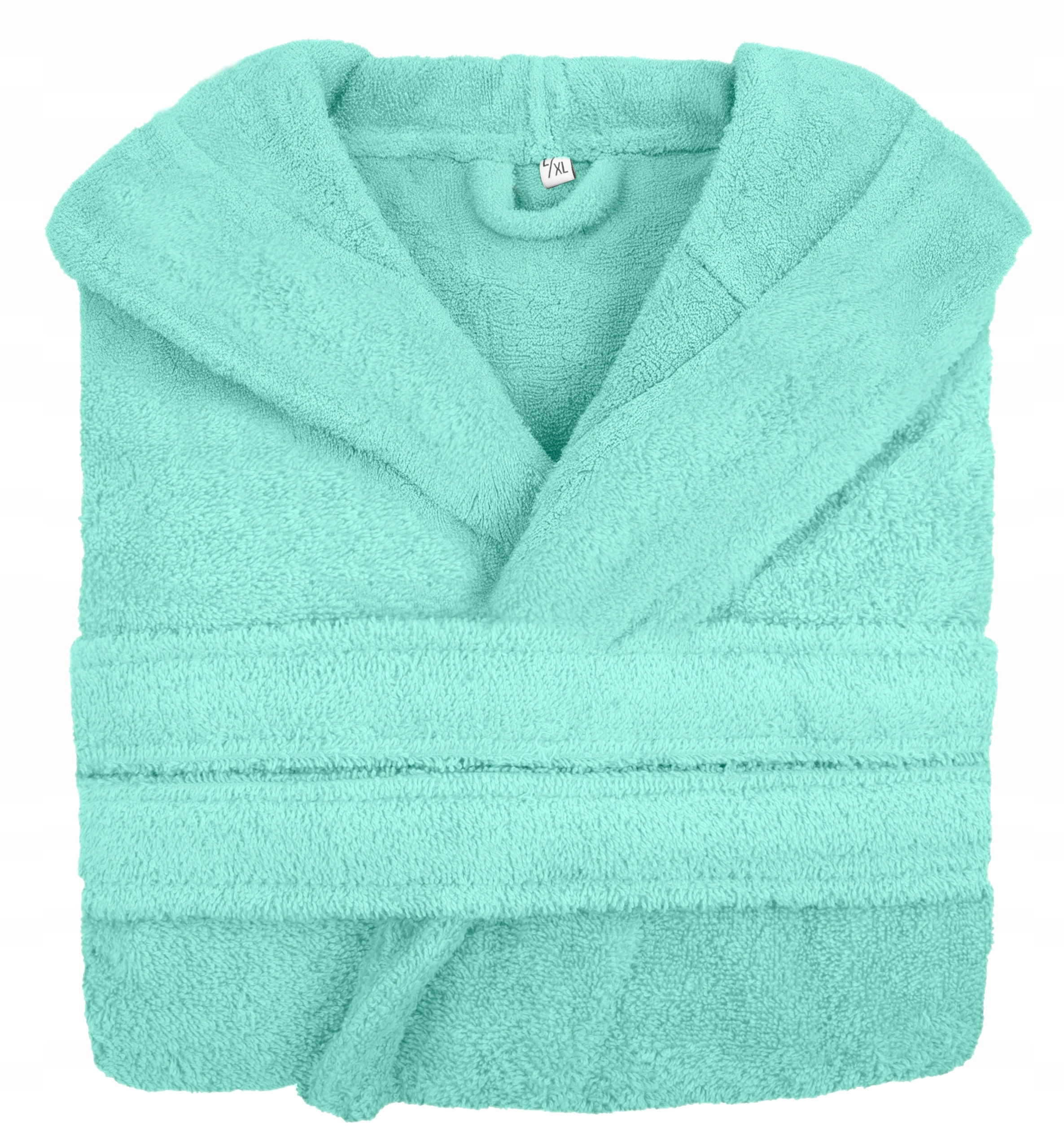 ЖІНОЧИЙ БАВОВНЯНИЙ ХАЛАТ З КАПЮШОНОМ, М'ЯТНИЙ, XS