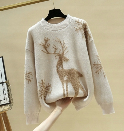 Чудовий товстий жіночий светр із декоративним оленем і сніжинками.