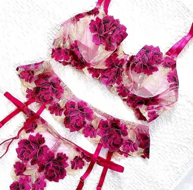❤ Прекрасна велика квіткова мережива вишивка з луками змусить вас почувати себе особливими, сексуальними та ще привабливішими в цій нижній білизні!