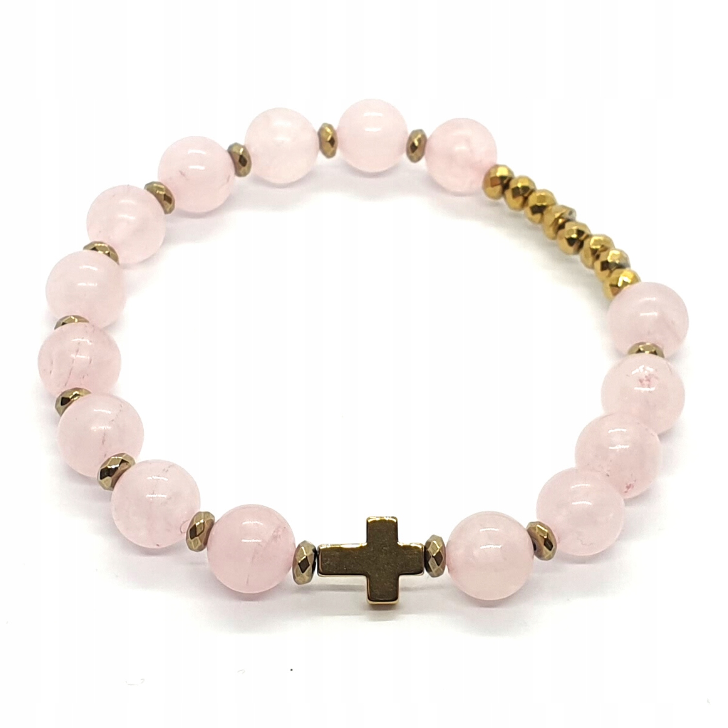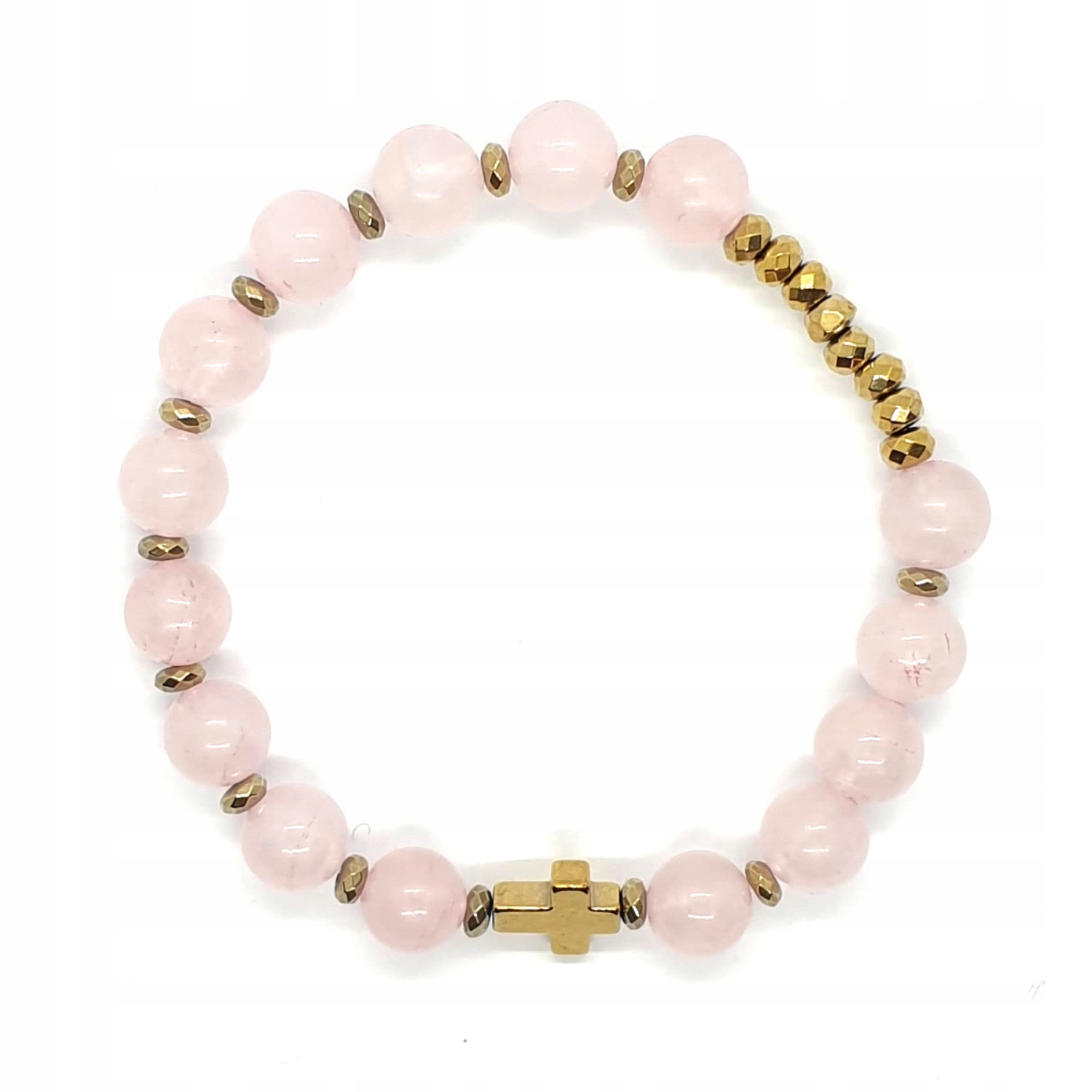 ✔ камені, що використовуються для виготовлення браслета : рожевого кварцу 8 мм кульок, гематит , покладених на золотий хрест 10х8мм, шини 2х4мм та 3x4mm