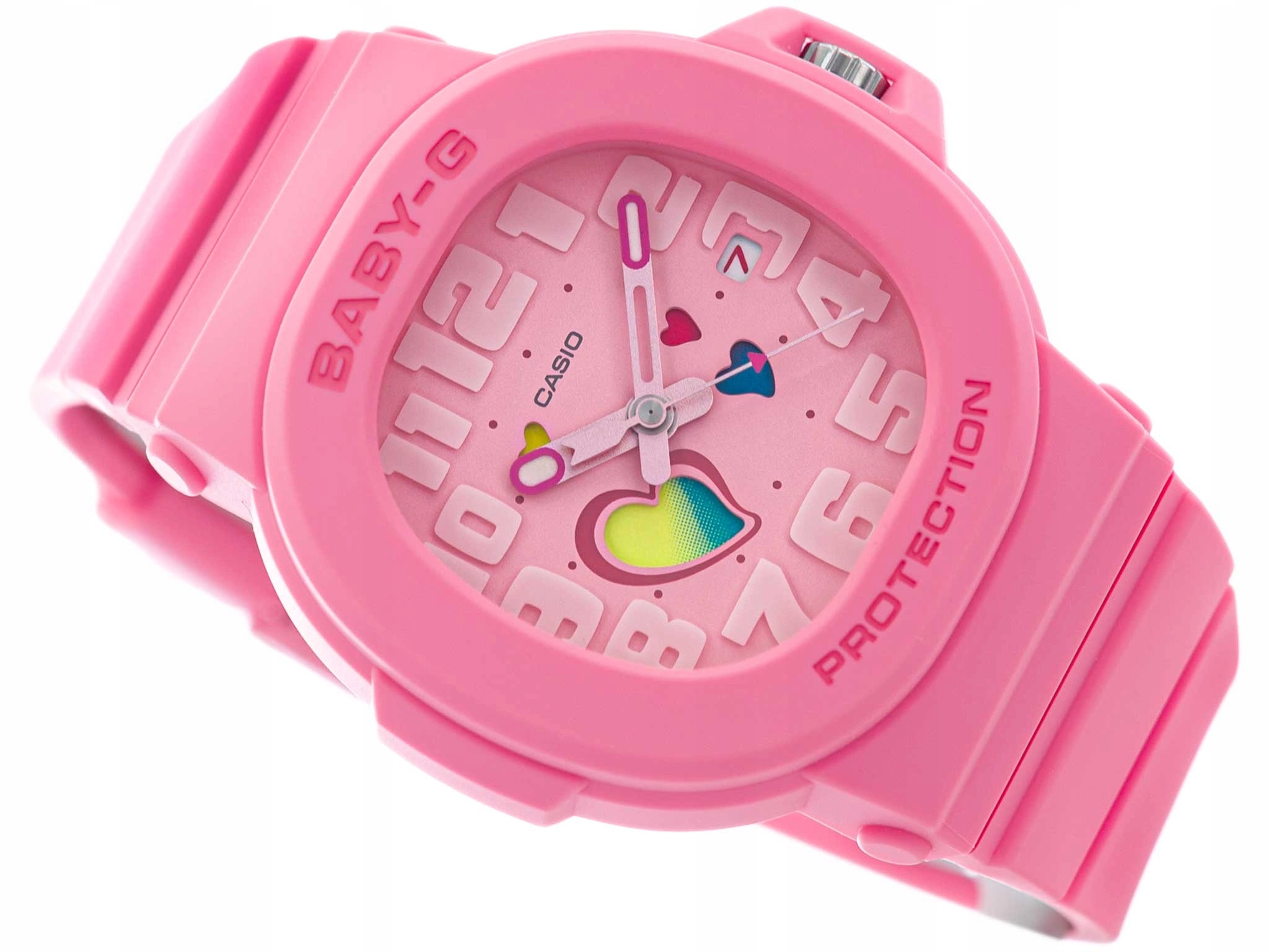 серія casio baby-g , створена спеціально для жінок. Він характеризується тими ж параметрами, що і чоловічий G-Shock. Висока сила, ударна стійкість та спортивна. 4 Кольорові кольорів, що змінюють ротаційний диск, дає йому унікальний персонаж, а знімна кришка гумової оболонки виявляє приховану, тонку деталь у вигляді серця збоку конверта.