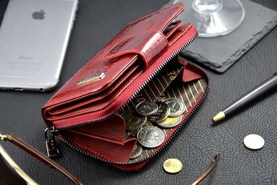Елегантний жіночий гаманець відомого бренду LORENTI. Виготовлений повністю з червоної шкіри. Представлена модель оздоблена оригінальним тисненням "croco" та глянцевим лаком!