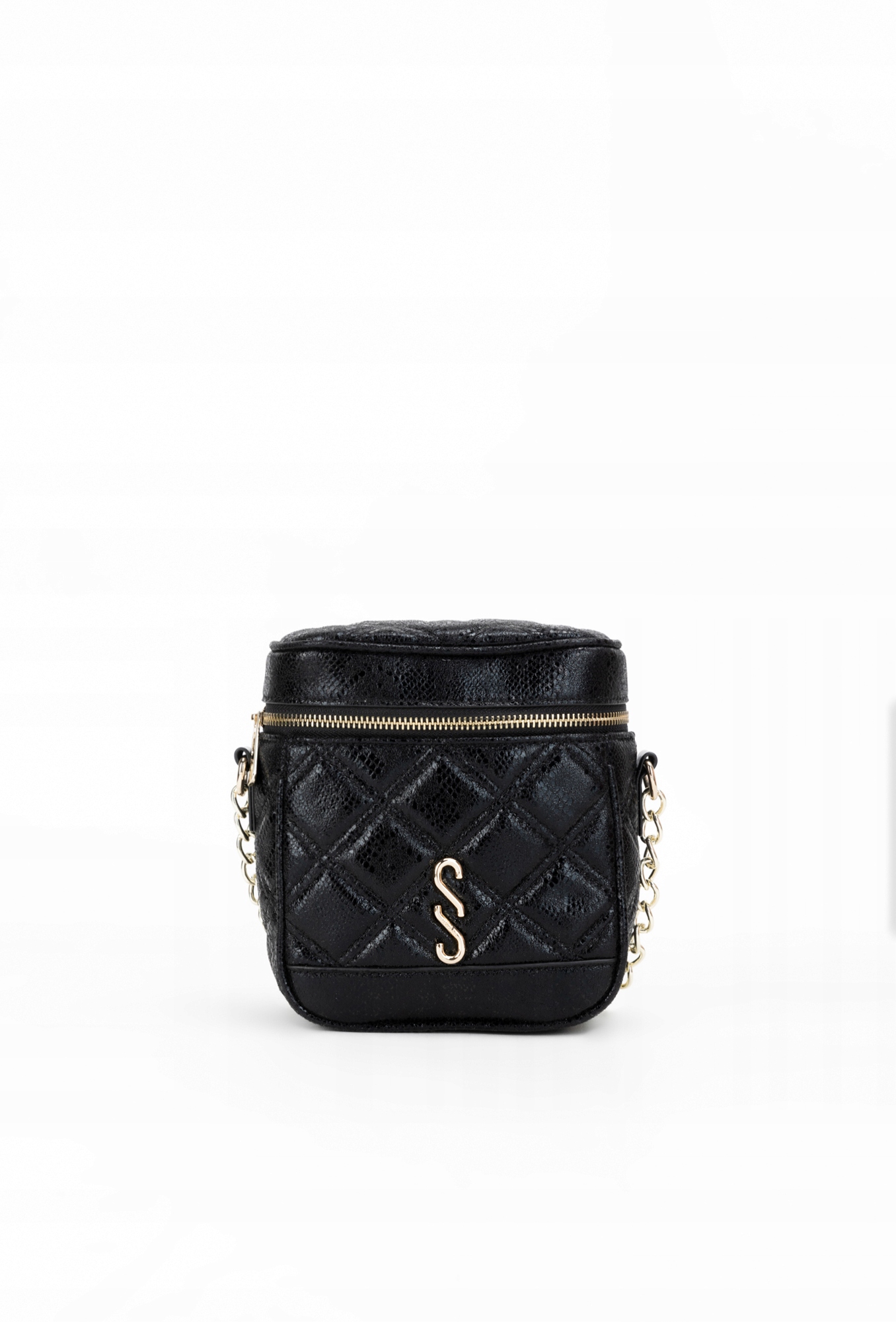 - Жіноча плавка через плече. Жіночий скринька зі стьобаним малюнком і цікавою формою. Сумка з одним відділенням на легкій підкладці з додатковими кишенями всередині для дрібниць і однією ззаду. Сумка застібається на блискавку, підвішується на ремінь на ланцюжку. Сумка повинна зберігатися в сумці, що надається. Розміри сумки: 17,5 см x 18,5 см, 8,5 см.