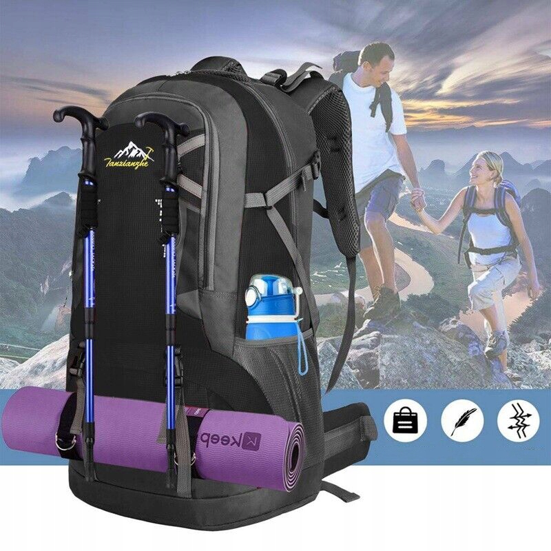 Історичний туристичний рюкзак, водонепроникний чоловічий рюкзак для подорожей на відкритому повітрі, водонепроникний 60 л, чорний