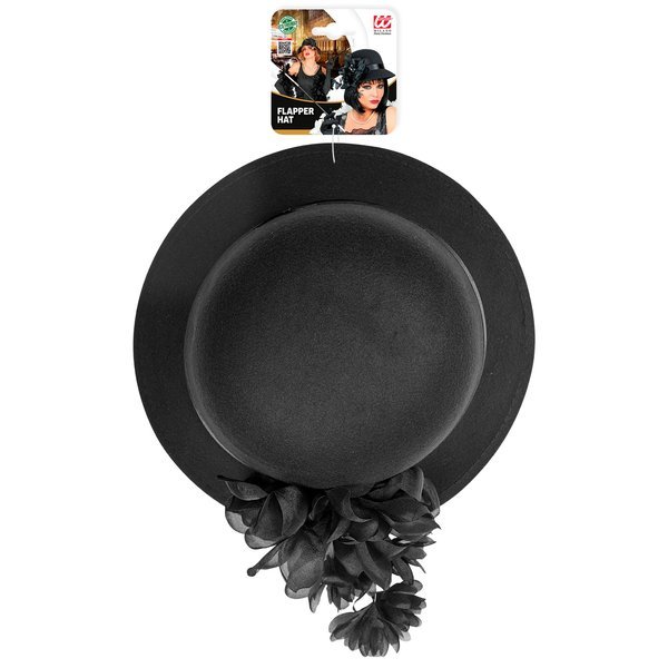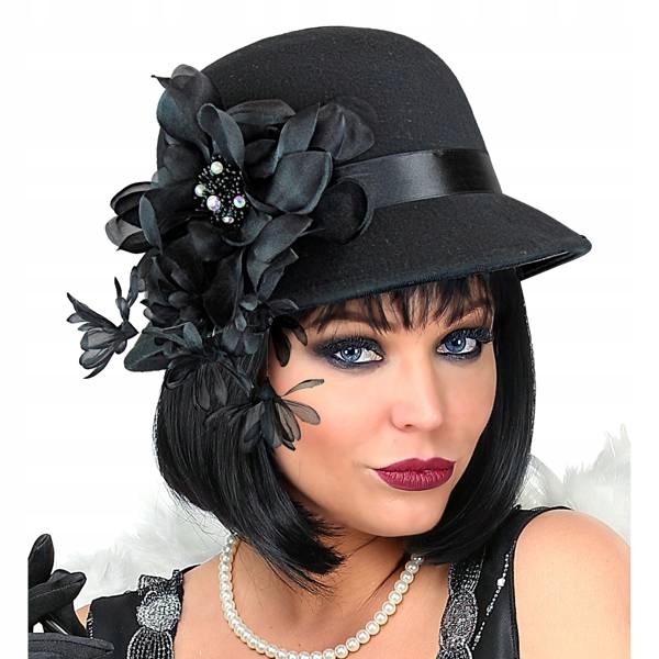KAPELUSZ CZARNY RETRO DAMSKI KWIAT CHARLESTON