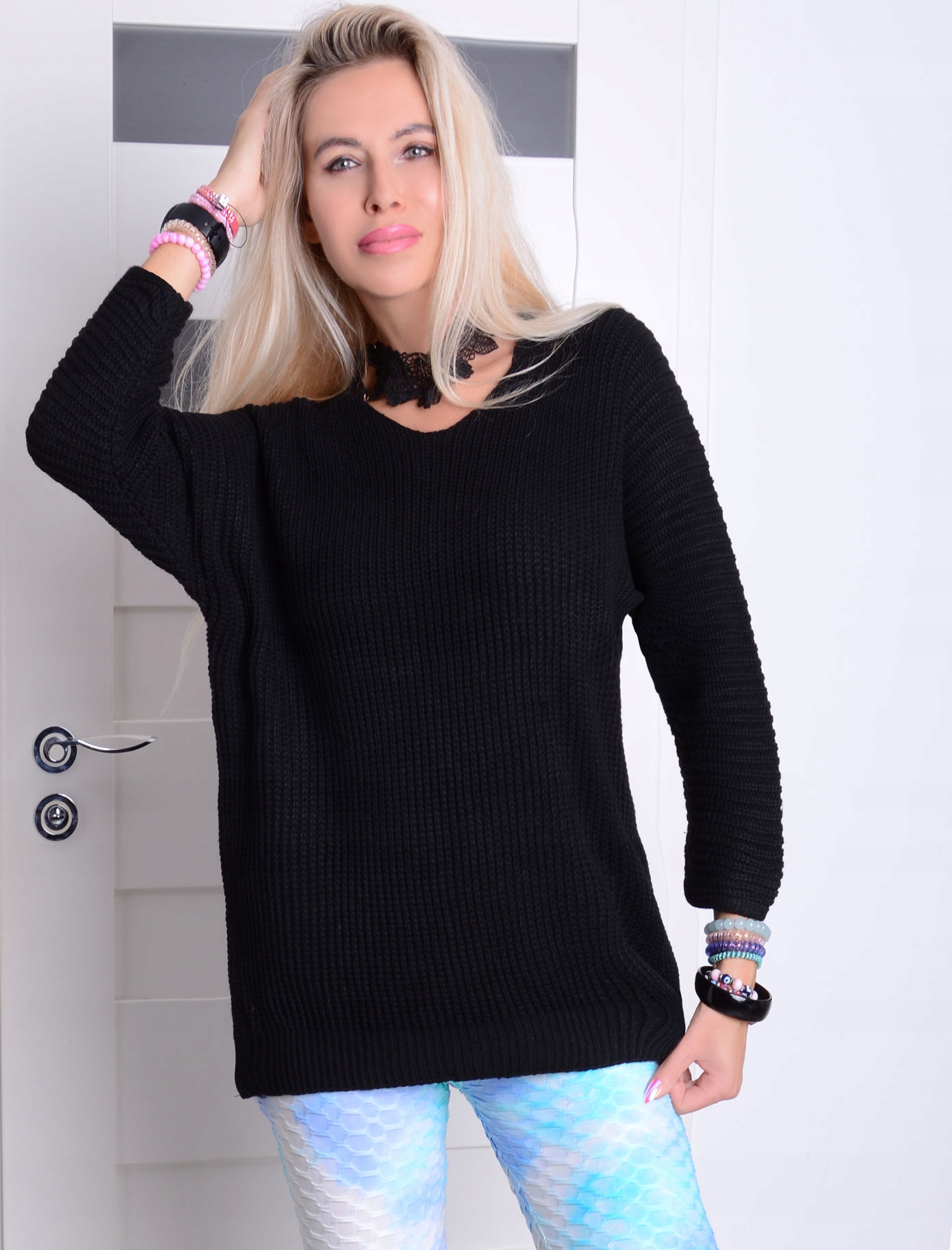 Жіночий чорний вільний светр довжиною до стегон ADDAMS P686