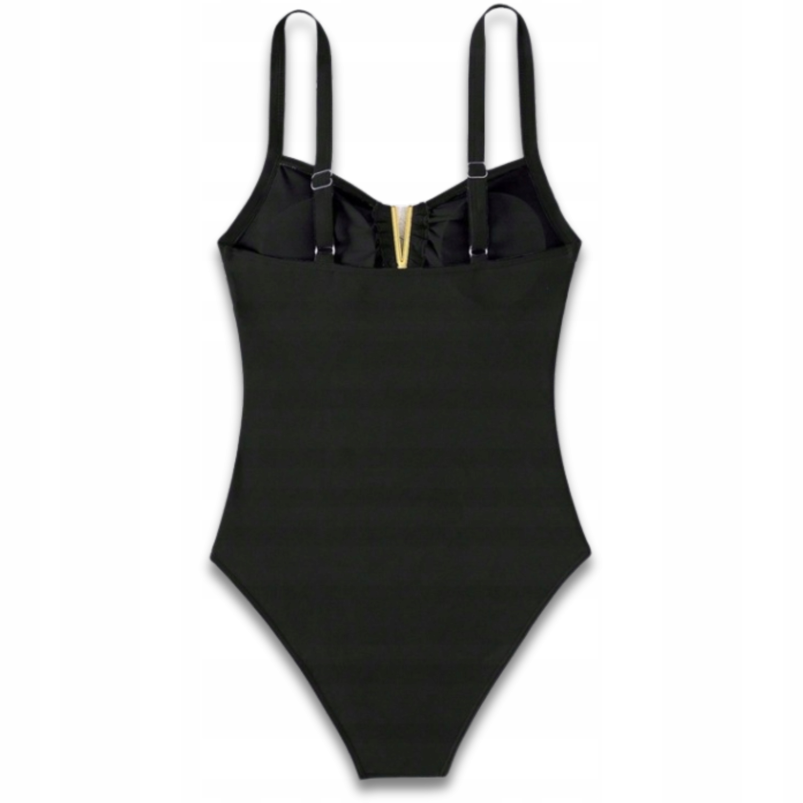 Цілий купальник класичного крою забезпечує комфорт і елегантність. Ювелірна вставка на декольте додає тонкого шарму, а сексуальний V-подібний виріз чуттєво відкриває плечі та оптично збільшує бюст.