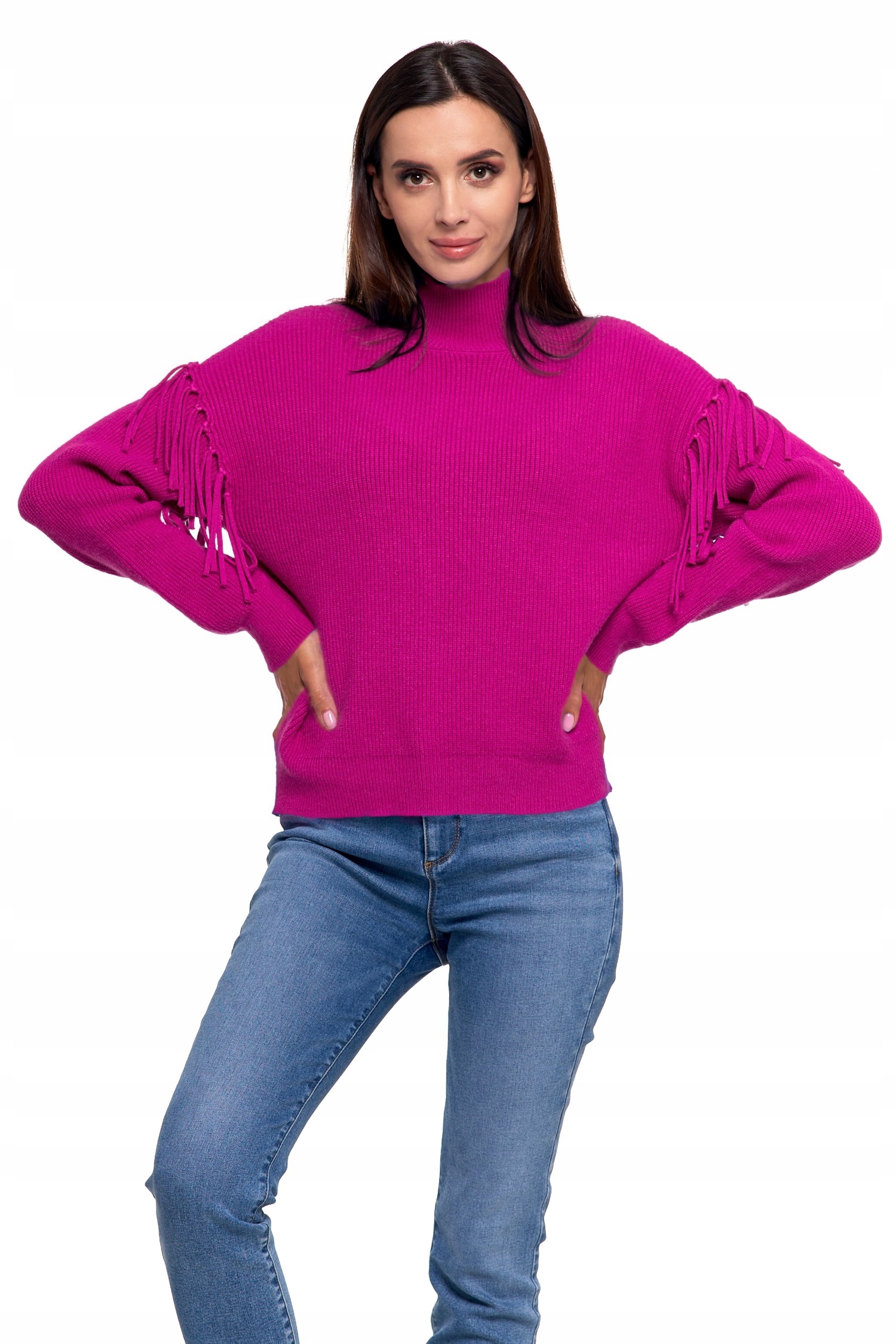 Елегантна водолазка: светр розроблено з витонченою водолазкою, яка надає йому елегантного вигляду та додає нотку розкоші вашому вбранню. Бахрома для неповторного стилю: светр прикрашений привабливою бахромою, яка надає йому оригінальності та привертає увагу. Це тонка прикраса, яка додає неповторного стилю светру. Комфорт і тепло: виготовлений з м’якого та приємного до шкіри матеріалу, светр забезпечує комфорт при носінні та ідеальну посадку. Ідеально підходить для холодних днів, коли ви хочете почуватися елегантно та тепло. Універсальний дизайн: цей светр настільки універсальний, що його можна носити як у повсякденному робочому стилі, так і в офіційних випадках, надаючи кожній ситуації унікальний характер.