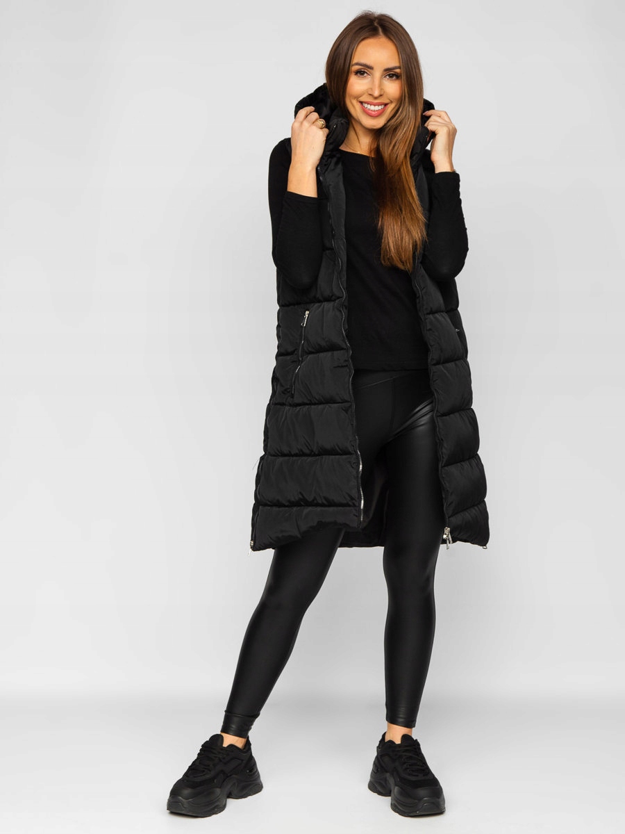 Чорна довга стьобана жіноча жилетка Bolf 81261, розмір S