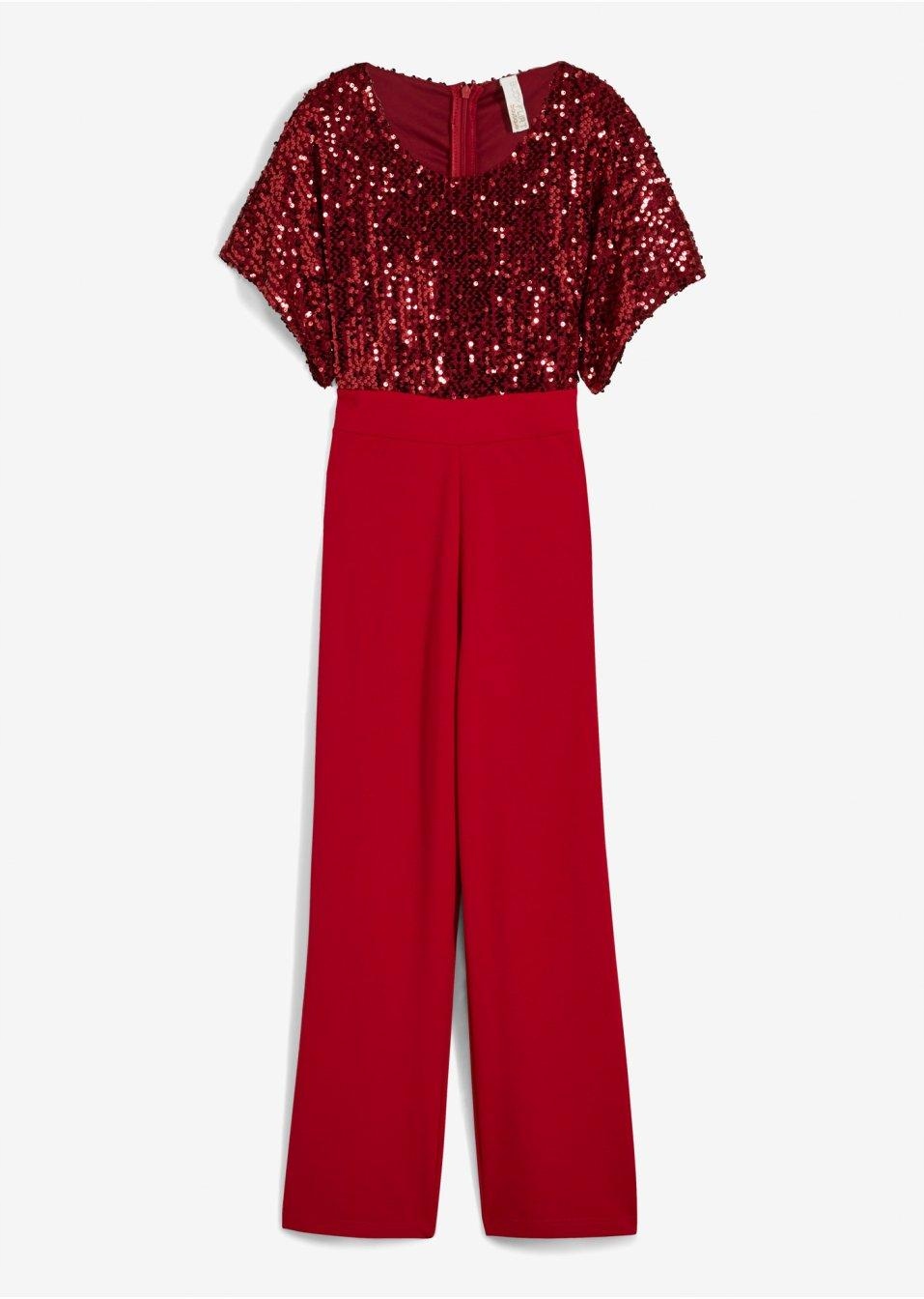 Привертає увагу червоний жіночий коктейльний комбінезон з паєтками - ідеальна пропозиція для жінок, які цінують елегантність і сучасний стиль. Приталений крій підкреслює фігуру, а блискучі паєтки додають розкішного блиску та неповторності. Комбінезон ідеально підходить для вечірніх виходів, вечірок та особливих випадків.