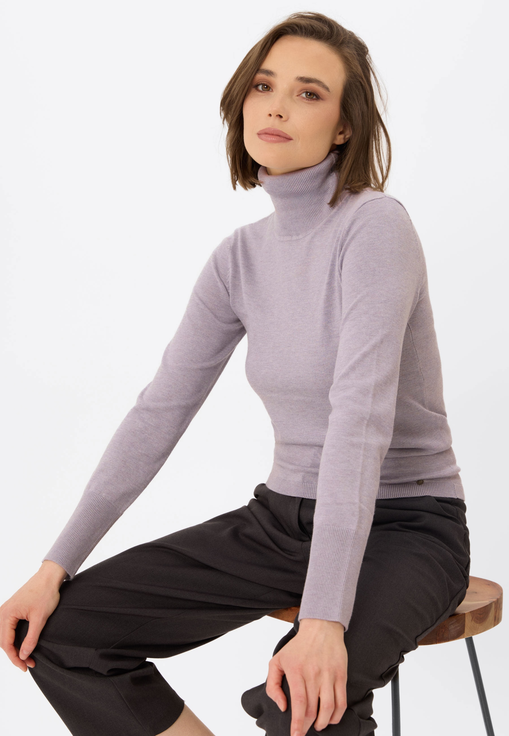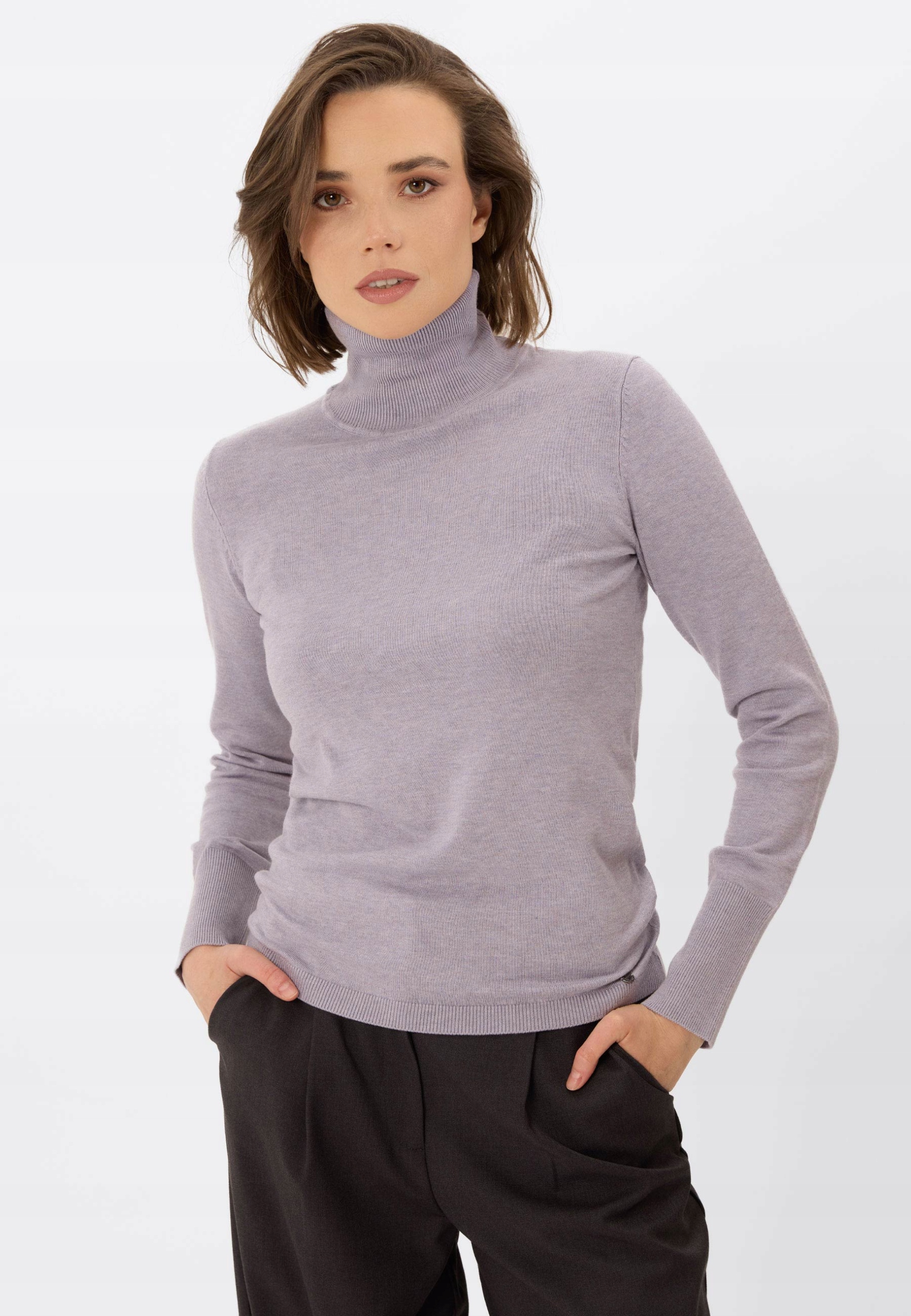 Верескова водолазка має приталений крій і підкреслює фігуру. Рукава оброблені широкими манжетами в рубчик. Весь крой простий, елегантний і доповнений ювелірною деталлю Volcano.