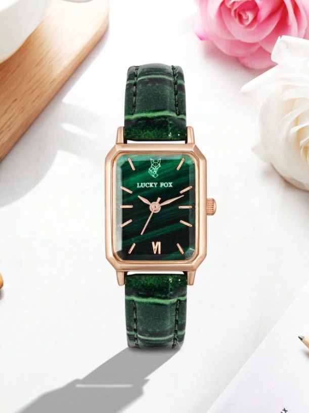 ЖІНОЧИЙ ГОДИННИК, ШКІРЯНИЙ РЕМІНЕЦЬ, ЗЕЛЕНИЙ КВАРЦ, МОДНО, ЕЛЕГАНТНО, LUCKYFOX