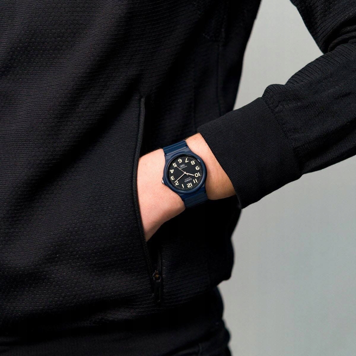 Годинник Casio MQ-24UC-2BDF — елегантний і практичний аксесуар для жінок, які цінують простоту та функціональність. Його круглий чорний циферблат і темно-синій ремінець створюють гармонійний контраст, надаючи йому виразного характеру.