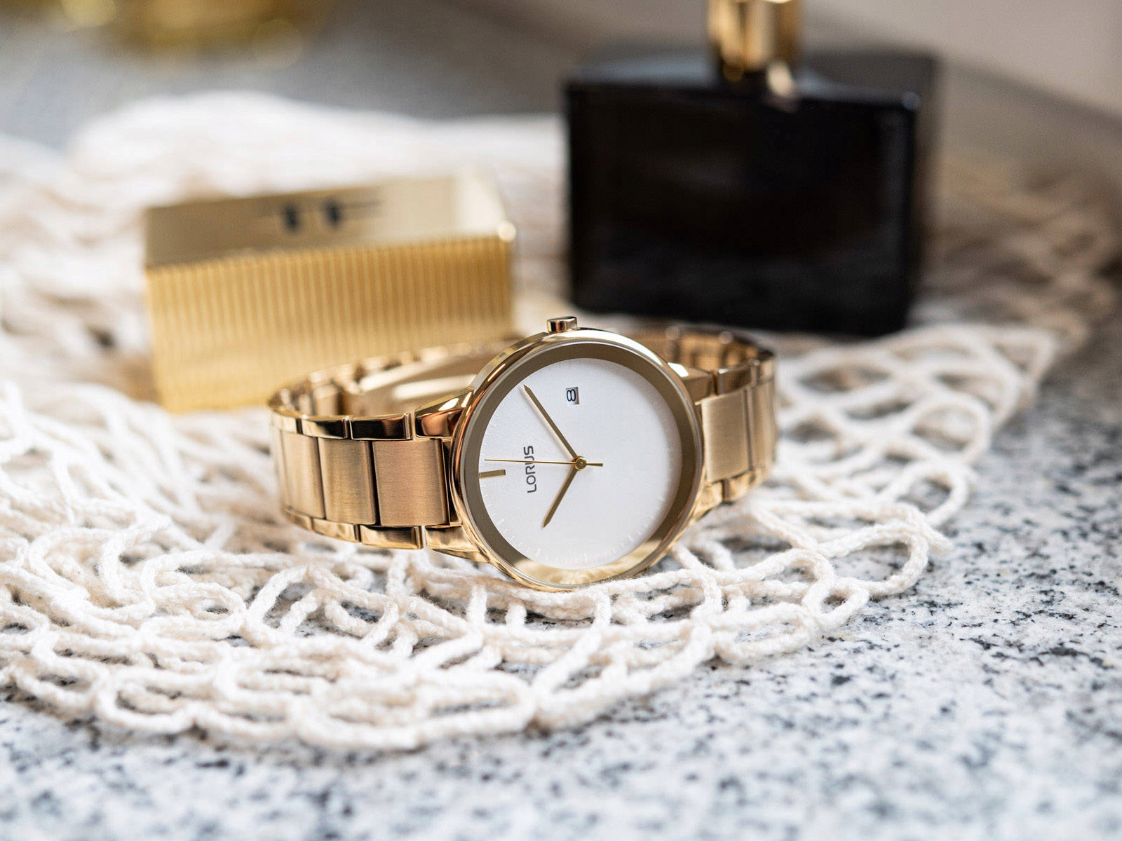 Цей годинник поєднує в собі золотий і білий кольори, що в поєднанні з універсальним розміром добре підходить як повсякденний аксесуар, а також для вечірнього вбрання.похід в кінотеатр або театр.