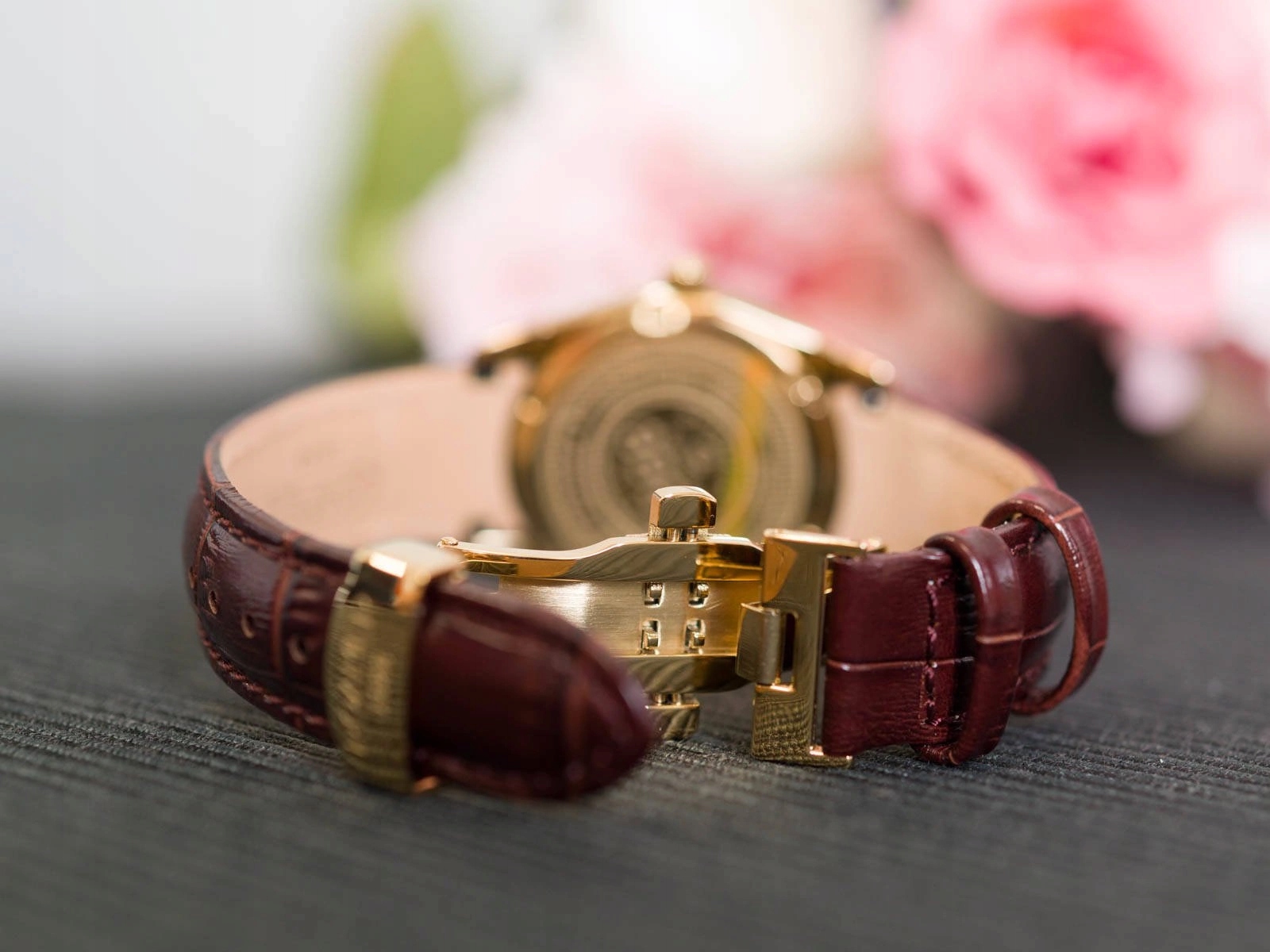 Годинник оснащений штампом побачення, розміщеним о 3 годині, вказує день місяця.