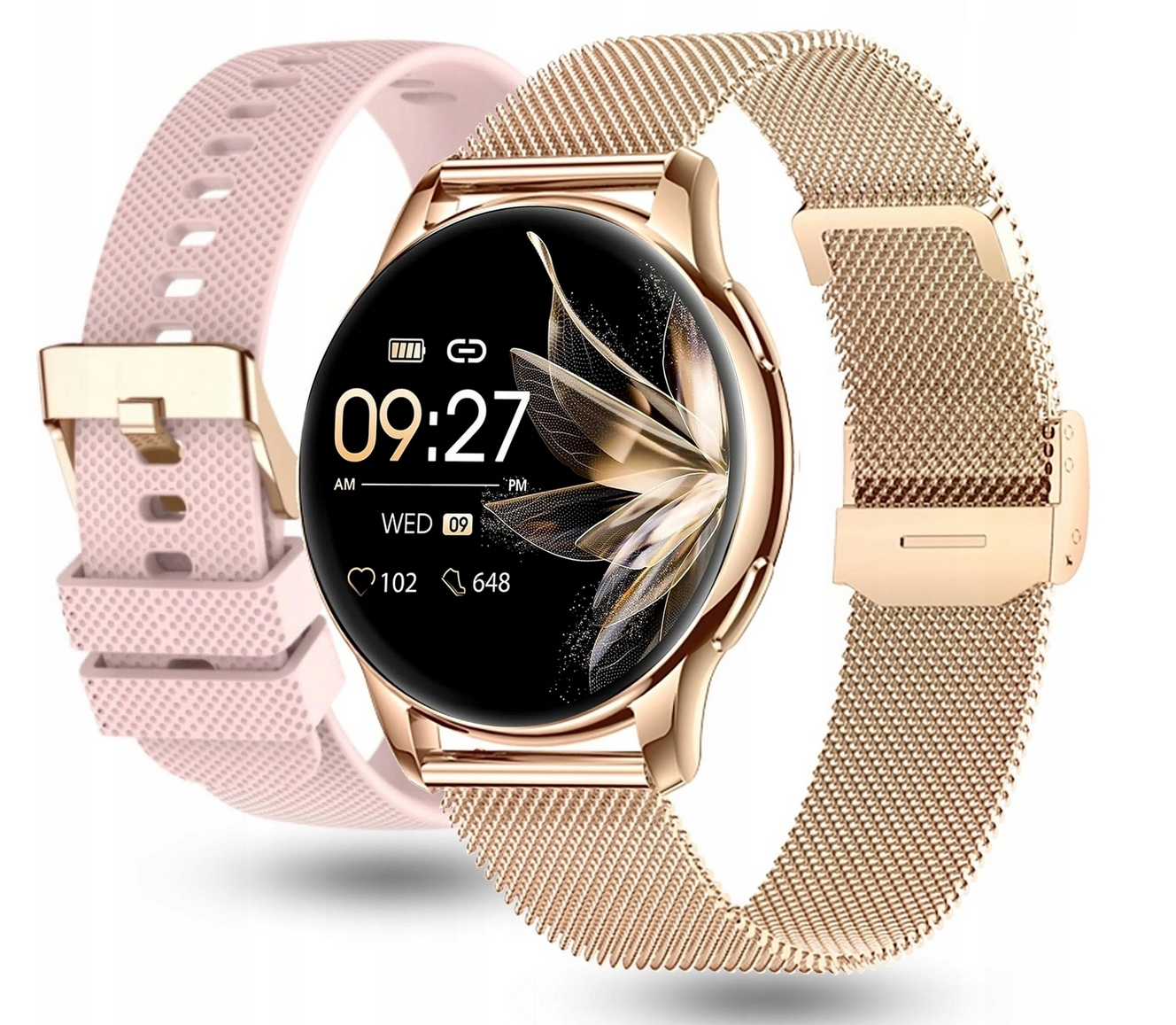 - Жіночий розумний годинник із двома браслетами (сталева сітка + силікон)