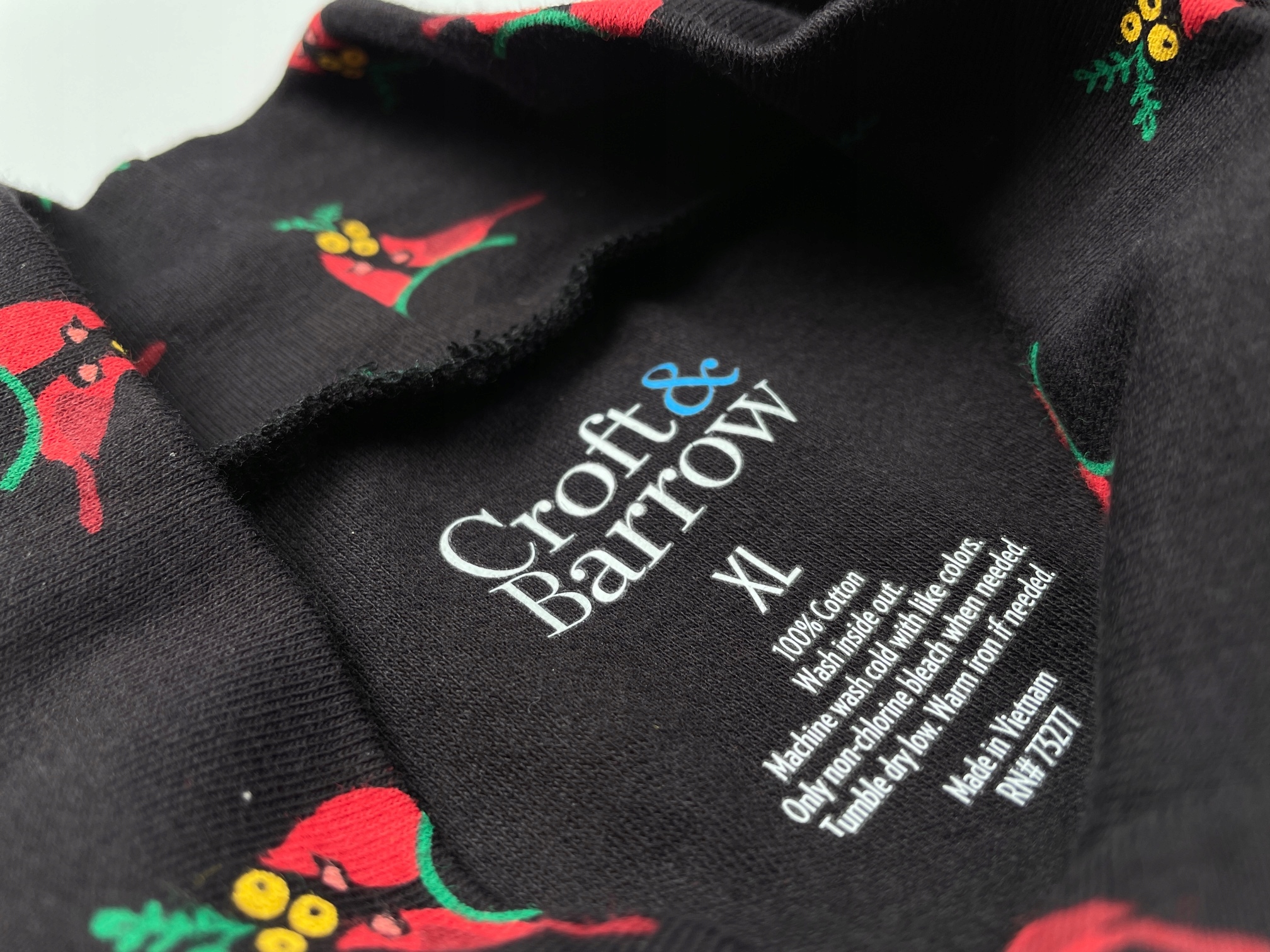 Жіноча черепашка Чорна різдвяна бавовна, омели птахи Croft & Barrow. Xl