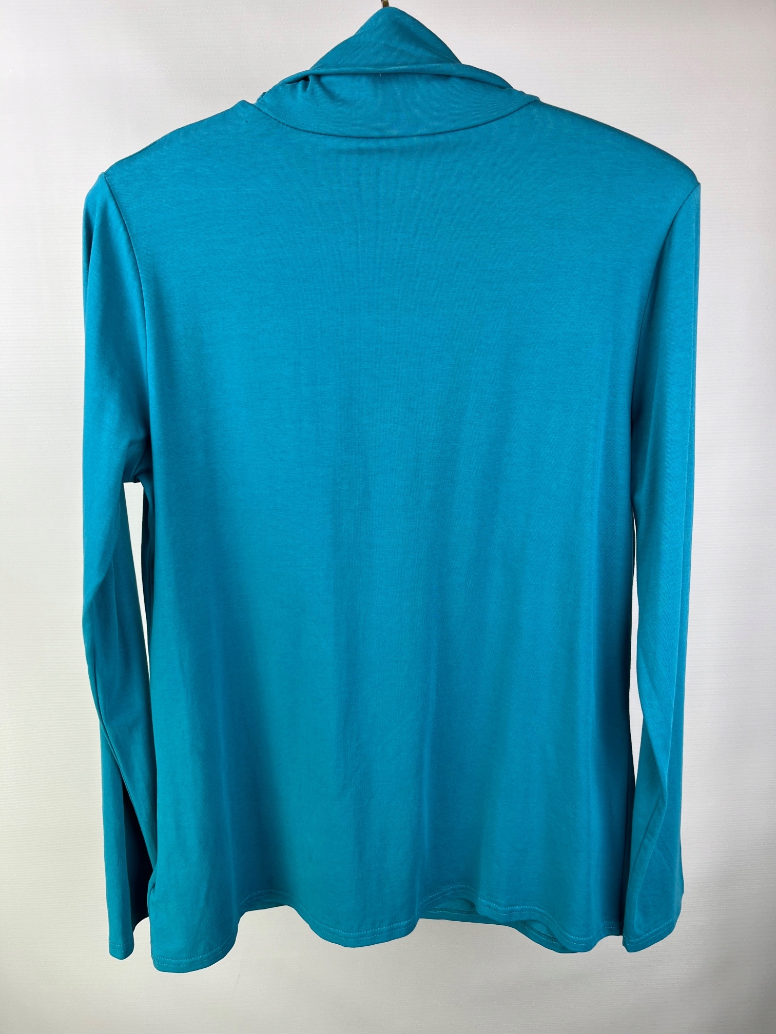 - Жіноча блузка, жіночий тонкий водолазка в морському кольорі. Розріз блузки простий з довгими рукавами з делікатним прикрасою у вигляді глазурі на декольте. Це буде добре поєднуватися з джинсами або чорними штанами і навіть спідницями.