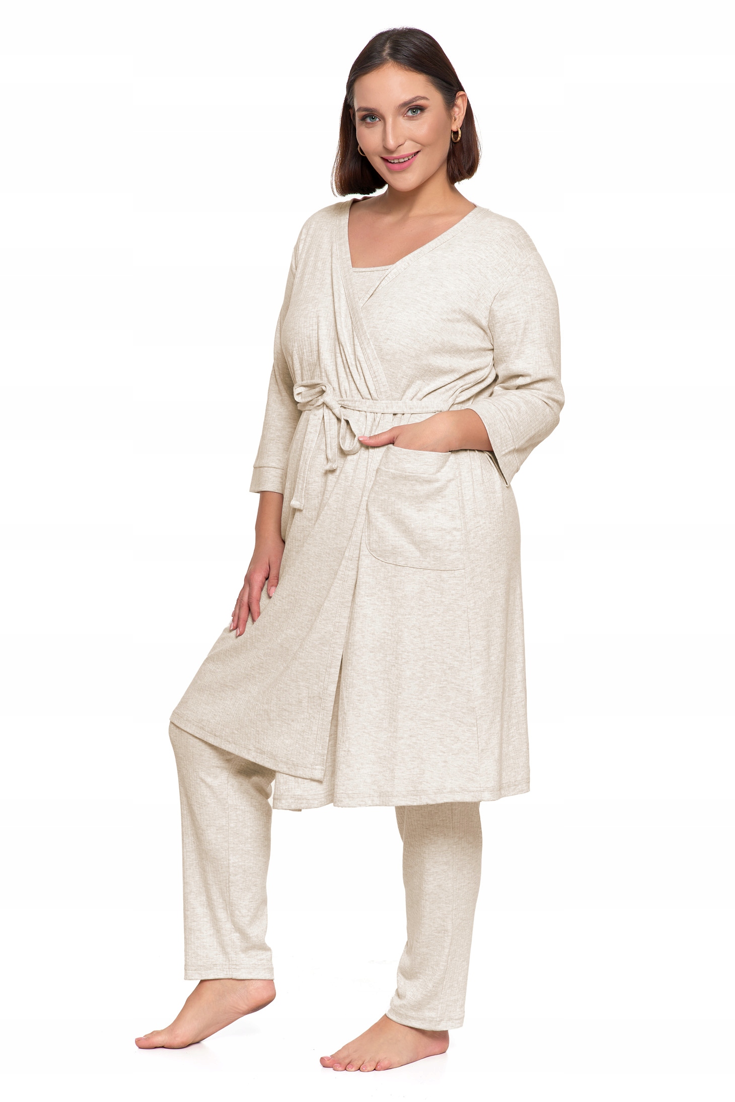 Жіночий халат ребристий трикотаж 3/4 Зв’язаний комфортний Moraj L