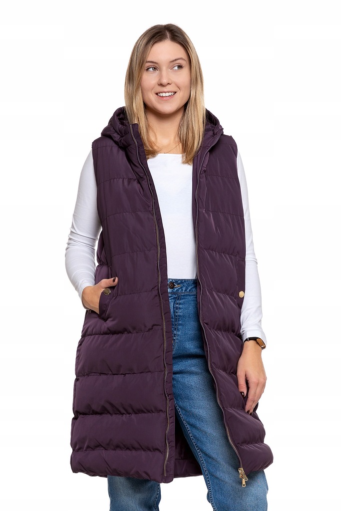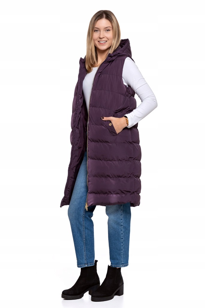 Цей жіночий жилет є ідеальним вибором для більш прохолодних днів, пропонуючи не тільки тепловий комфорт, але й модний, елегантний вигляд. Відповідність відповідності підкреслює фігуру, при цьому гарантуючи повну свободу руху, що робить його практичним вибором як щодня, так і для більш вимогливих випадків. Довжина, що досягає колін, забезпечує оптимальний захист від холоду, навіть у вітряні дні.