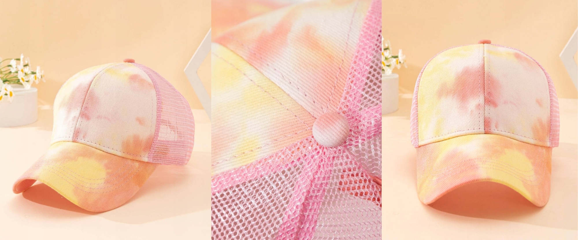 ⭐ Рожеві та жовті плями: декоративні рожеві та жовті плями надають капелюху трохи свіжості та енергії, що привертає увагу та виділяє його серед інших аксесуарів. Завдяки цьому новому дизайну капелюх набуває ще більшого характеру та виразності, ідеально поєднуючись з літньою атмосферою та додаючи динамічності будь-якому стилю.