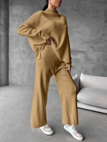 ЖІНОЧИЙ КОМПЛЕКТ, БЕЖЕВИЙ, В РУБРИЧКУ З ШЕРСТЯНОЇ ШЕРСТИ