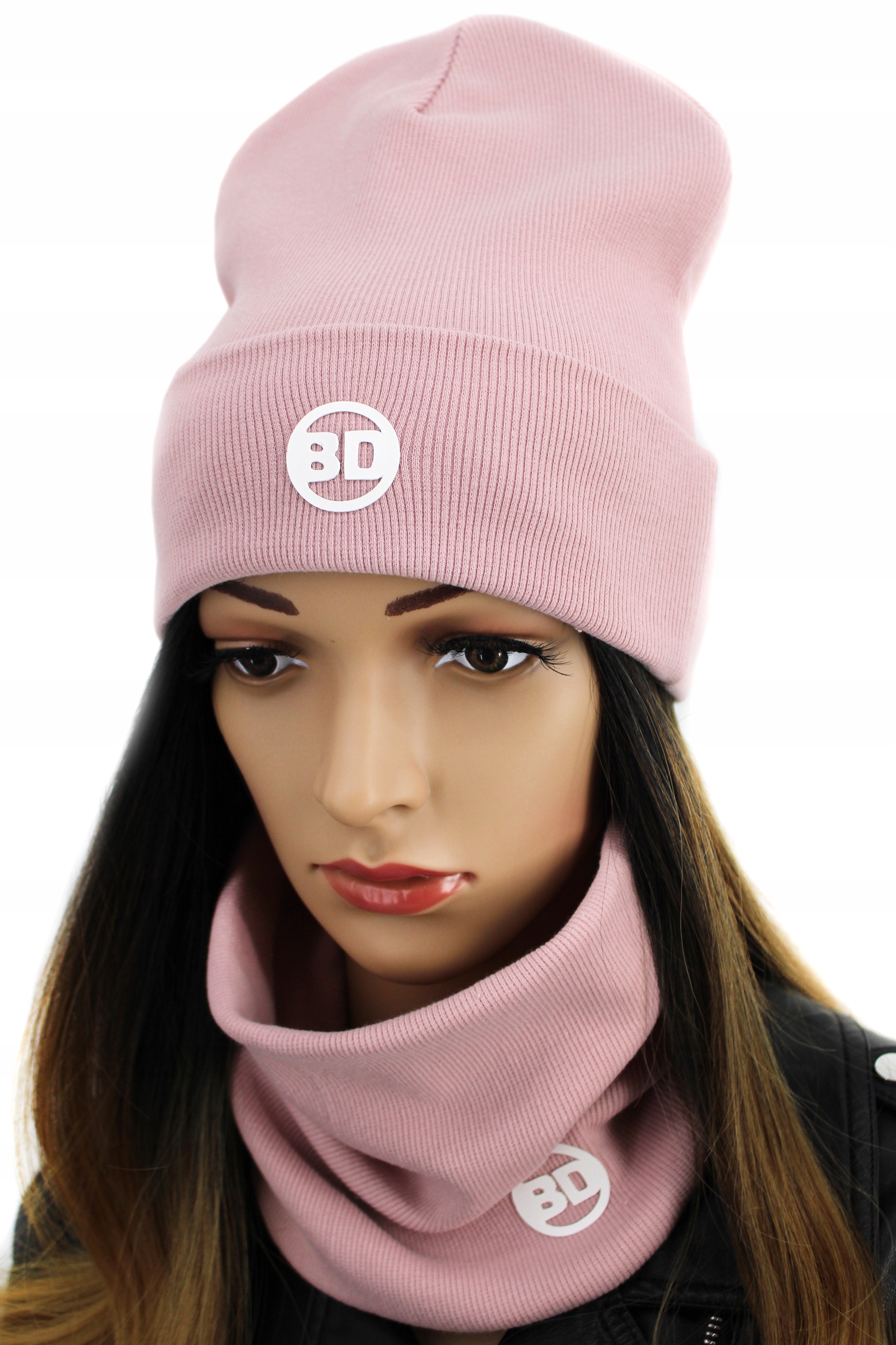 ЖІНОЧИЙ / МОЛОДІЖНИЙ ДВІЙНИЙ БАВОВНОВИЙ КОМПЛЕКТ КАПЕЛЮХ + ТУБ - ПУДРОВО-РОЖЕВИЙ