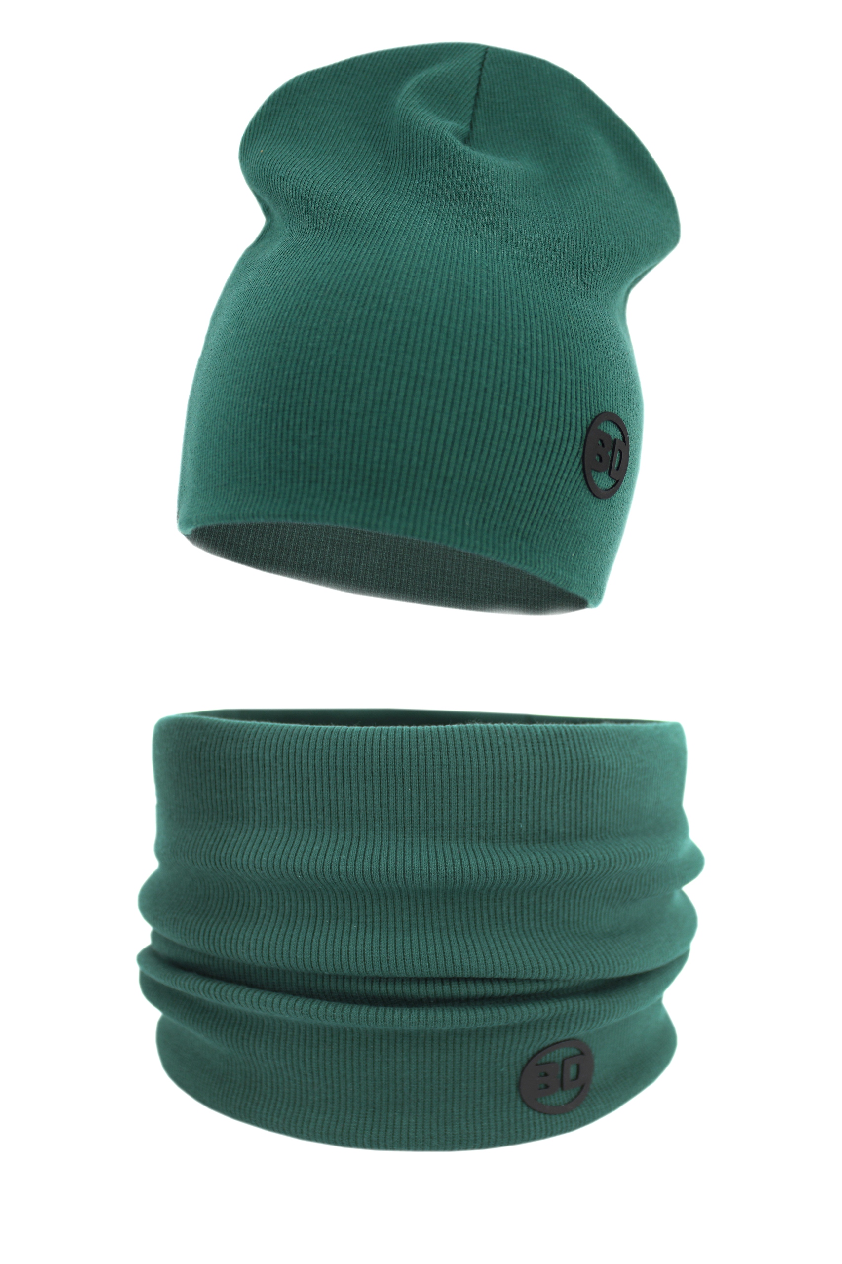 ЖІНОЧИЙ / МОЛОДІЖНИЙ ДВІЙНИЙ БАВОВНОВИЙ КОМПЛЕКТ КАПЕЛЮХ + ТРУБА - ПЛЯШКОВО-ЗЕЛЕНИЙ