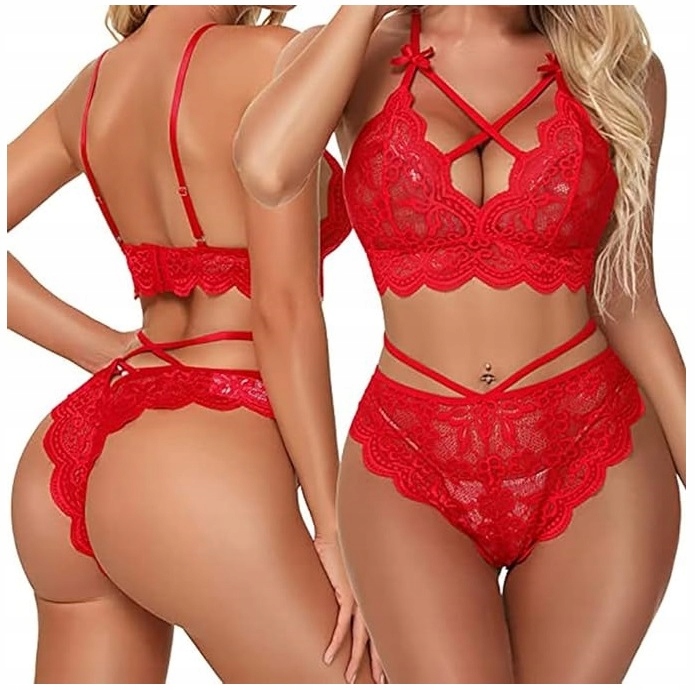 ❤️ Червоний колір, мереживо та банти додадуть блиск вашій шкірі та запалять почуття вашого партнера. Цей комплект змусить вас відчути себе особливою, сексуальною та ще більш привабливою.