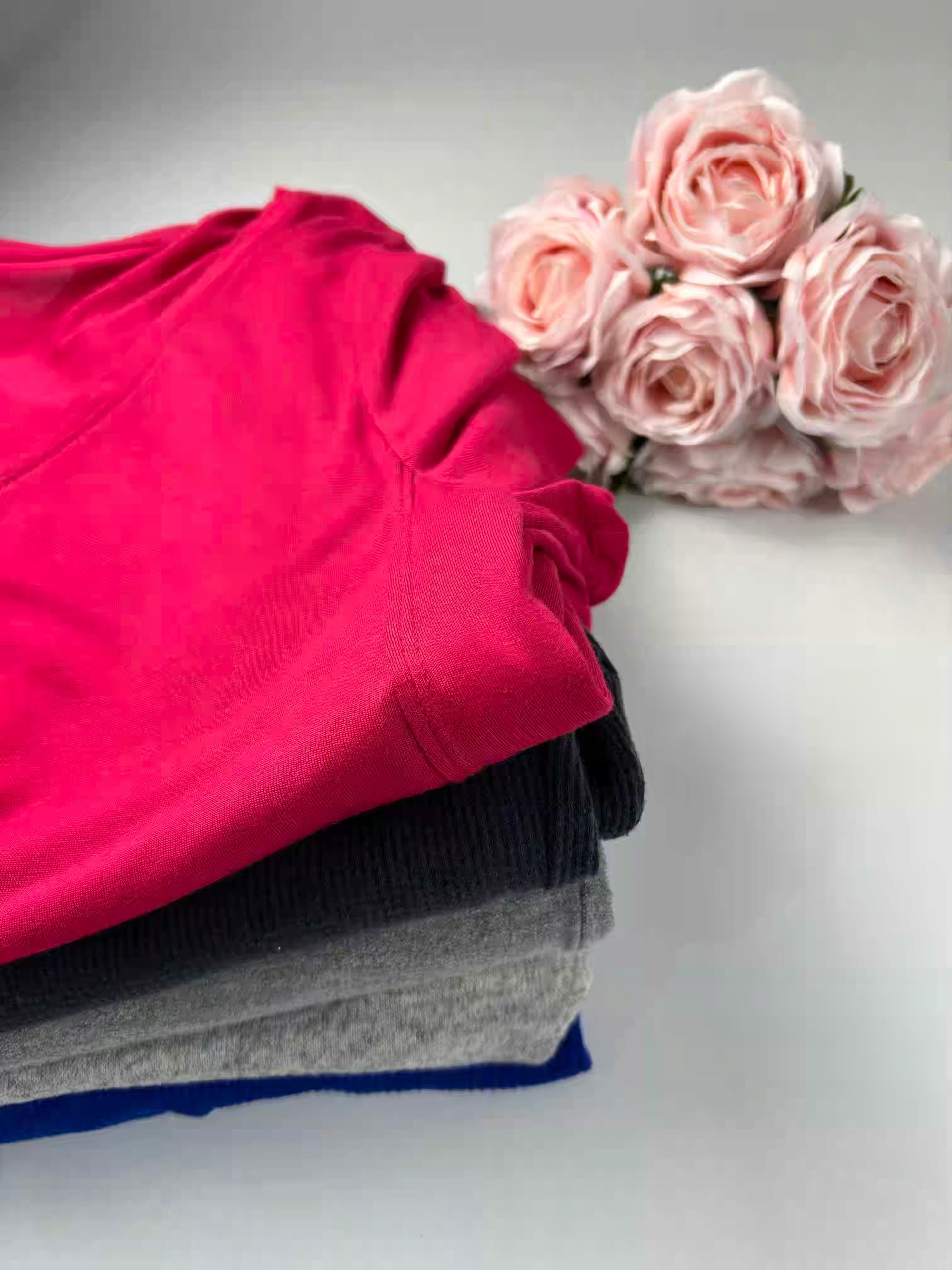 - Комплект з блузок, светрів та світшотів. Дуже гарно підібрані кольори. Набір ідеально підходить для жінок, які цінують комфорт і зручність, а також приємні на дотик матеріали з цікавою структурою.