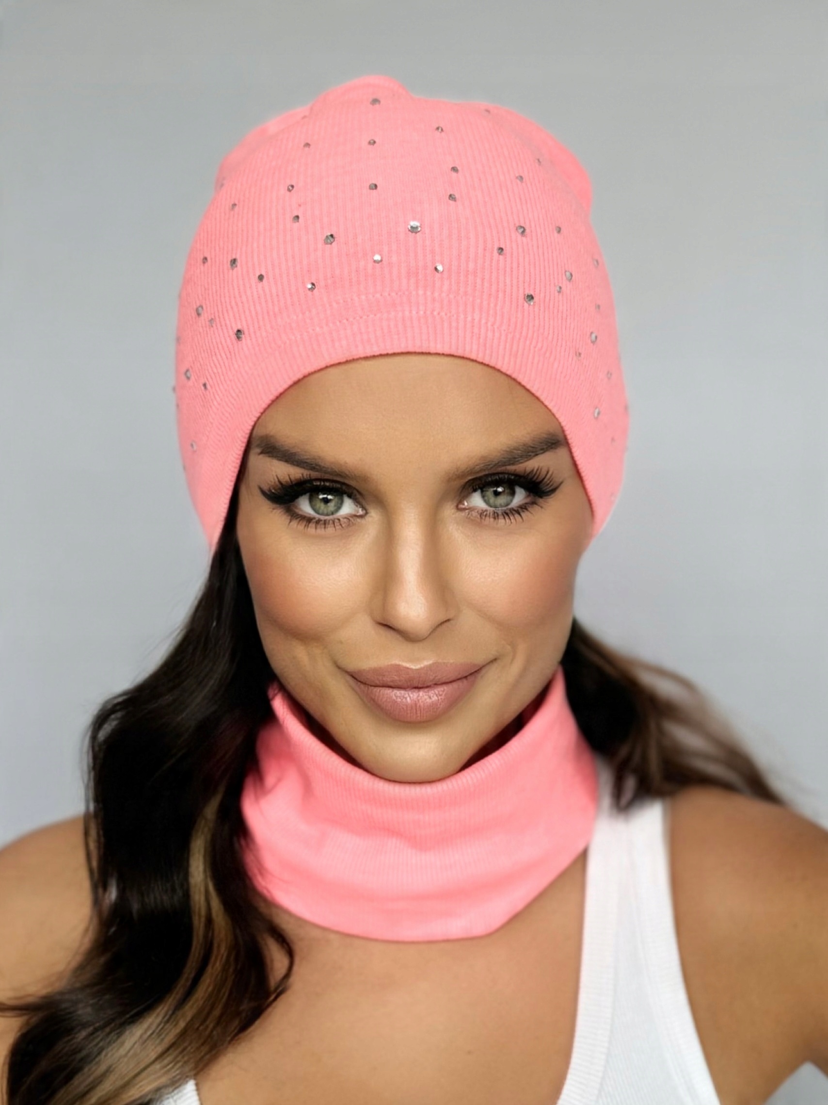 ✅ Шапка біні/гном, м'яко спадаюча, згорнута, прикрашена стразами.