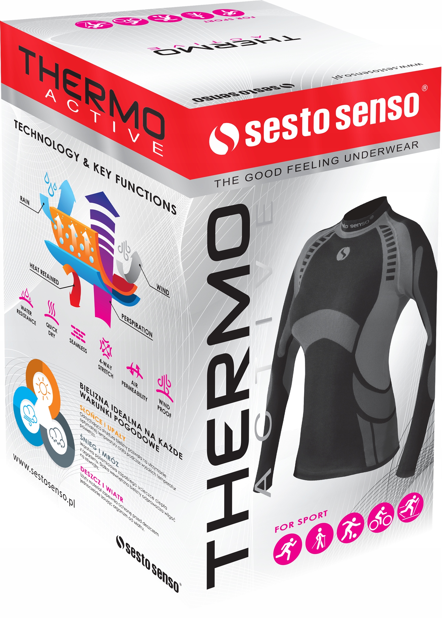 Термоактивна білизна з антиалергічного та бактеріостатичного матеріалу. Використання двошарової дихаючої тканини дозволяє швидко відводити вологу. Тіло залишається сухим і підтримує оптимальну температуру навіть під час інтенсивних тренувань. Технологія безшовної обробки забезпечує ідеальну посадку та повну свободу рухів. Ідеально підходить для зимових видів спорту, їзди на велосипеді, бігу або скандинавської ходьби. Упакований в оригінальну, естетичну коробку, що робить його чудовим подарунком. Товар виготовлено в Польщі. Рекомендуємо вибрати менший розмір. Склад: 96% поліамід 4% еластан.