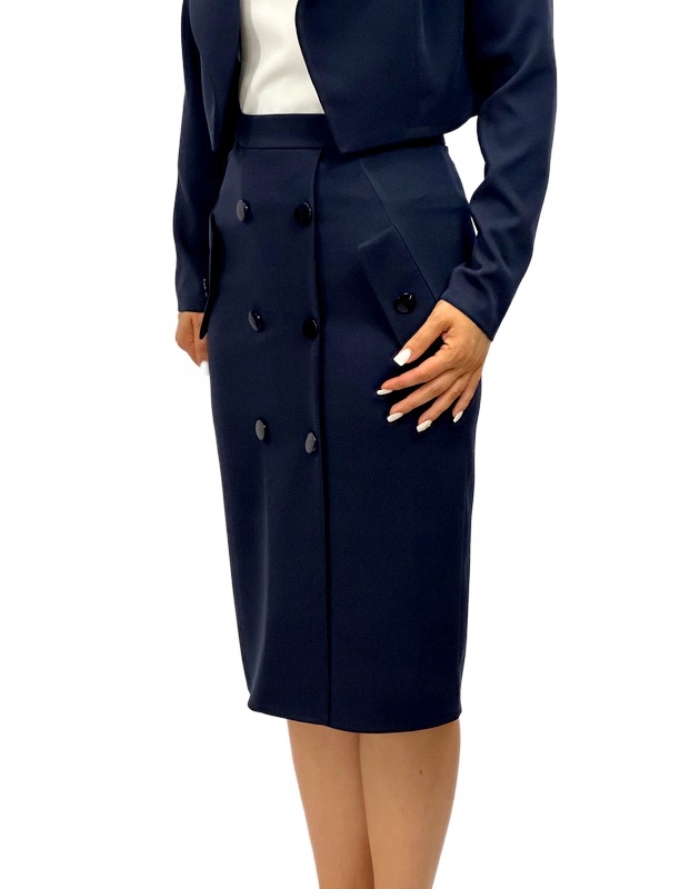 ЖІНОЧИЙ КОРОТКИЙ КОСТЮМ ЗІ СПІДНИЦЮ ТЕМНО-СИНІЙ L